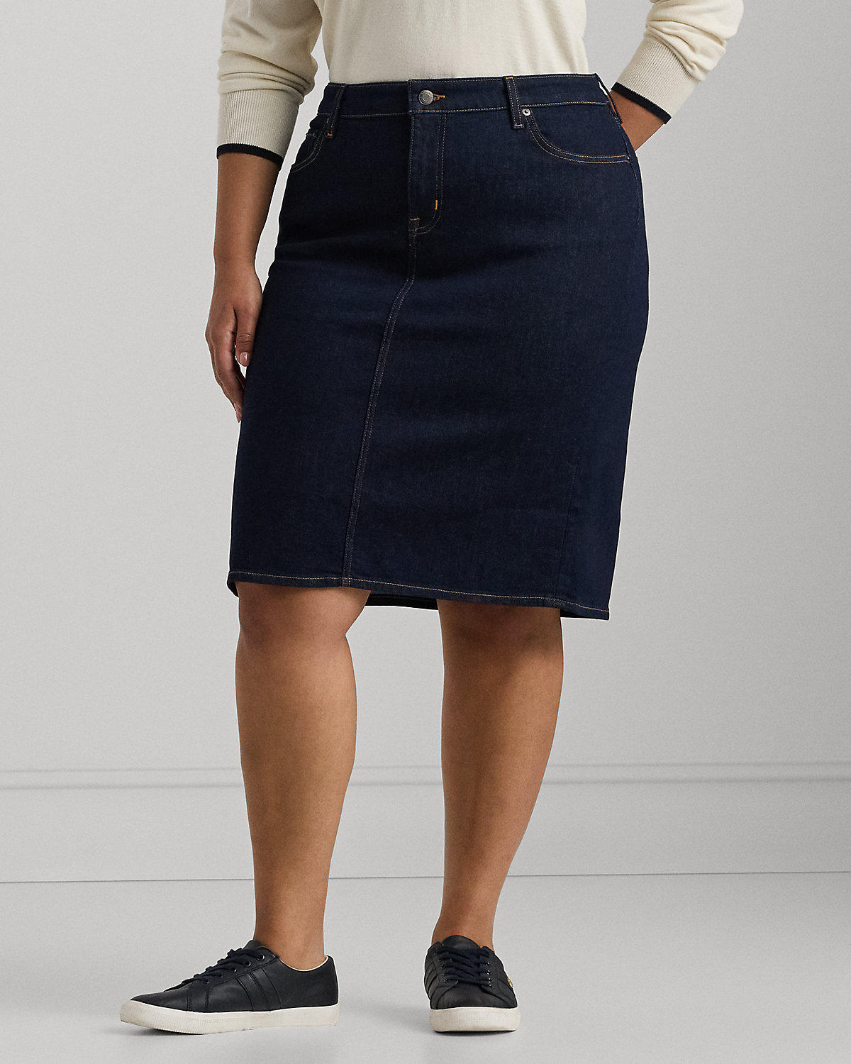 Made from soft denim with a hint of stretch, this classic five-pocket denim skirt is a versatile, season-spanning essential.