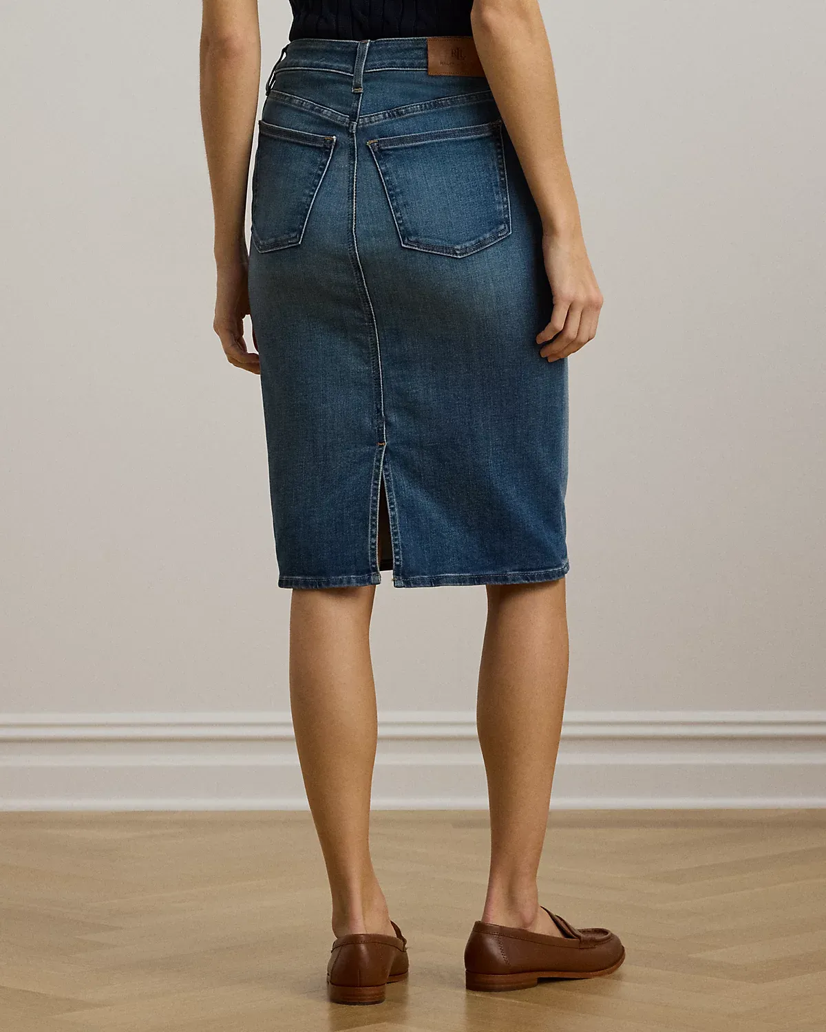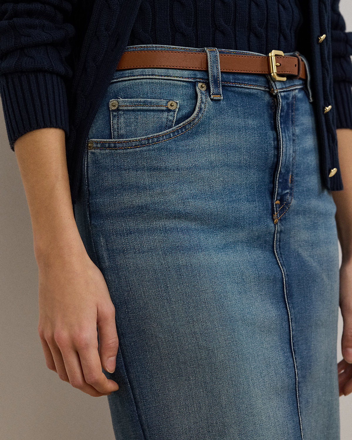 Made with soft denim with a hint of stretch, this classic five-pocket denim skirt is a versatile, season-spanning essential.