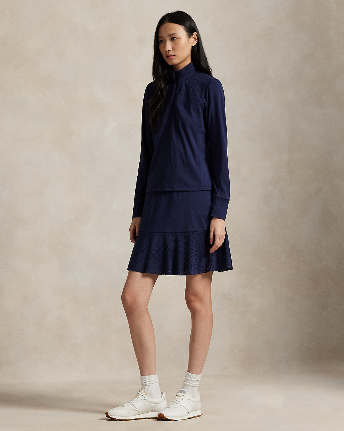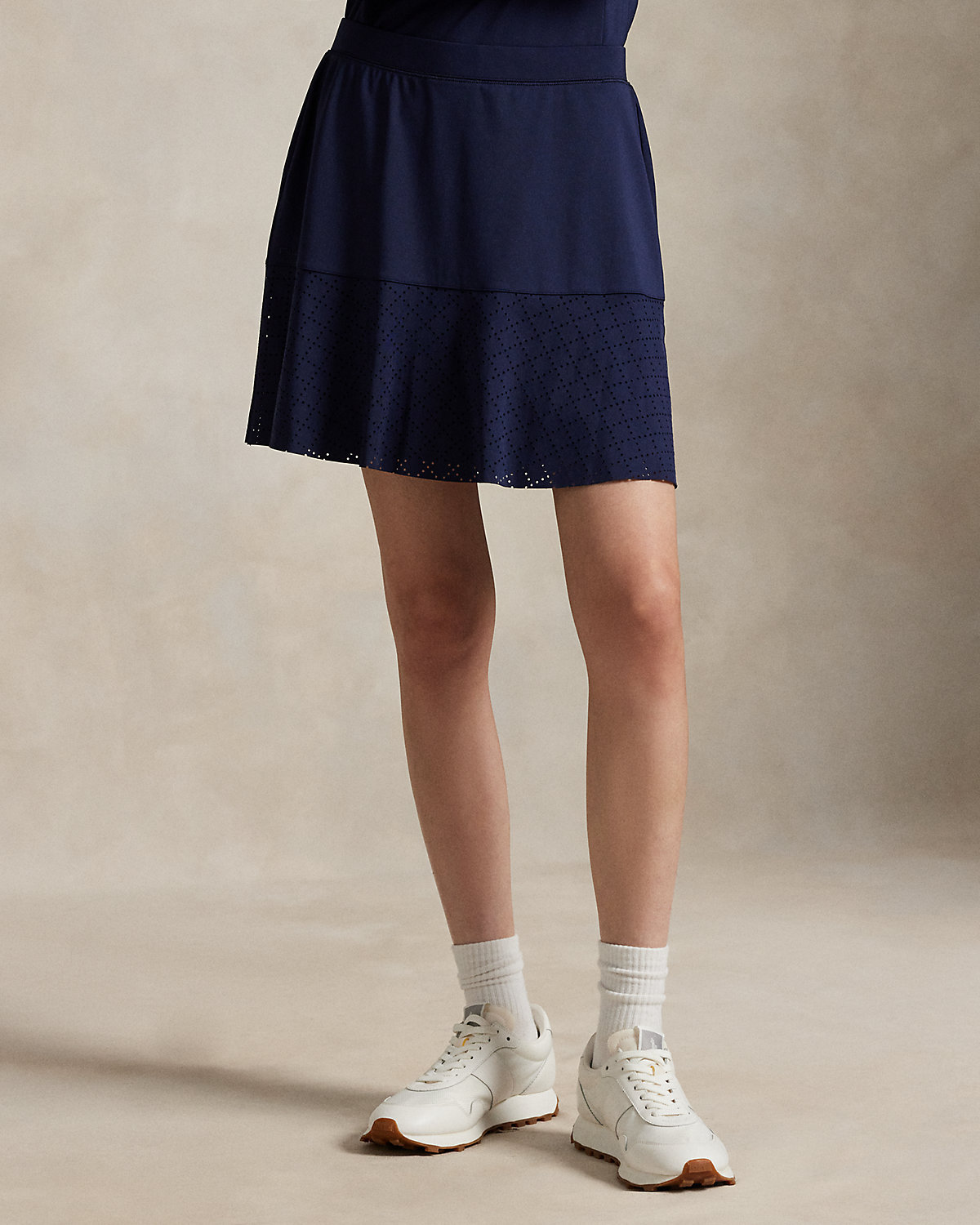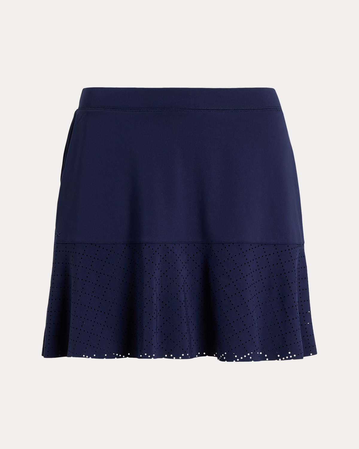 Constructed for an A-line silhouette, this stretch interlock skirt moves with you and features laser-cut eyelet panels. It’s outfitted with an interior short with ball pockets.