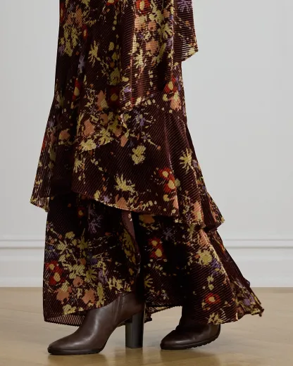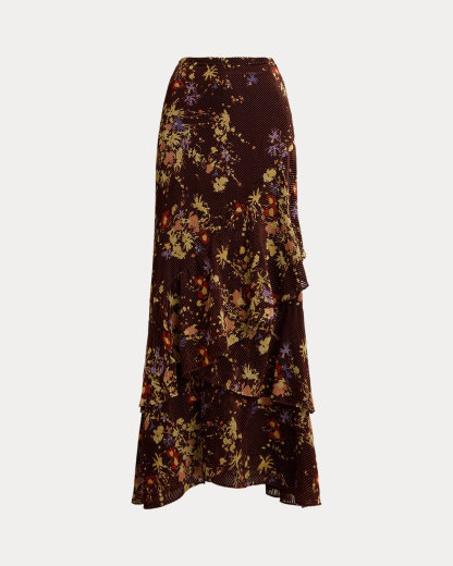 Floral Burnout Velvet Tiered Maxiskirt