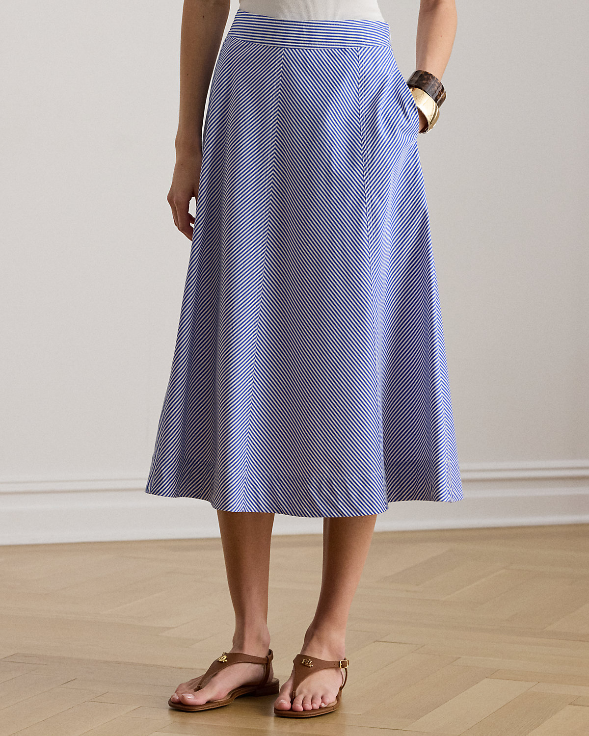 Striped Paneled Cotton Broadcloth Skirt