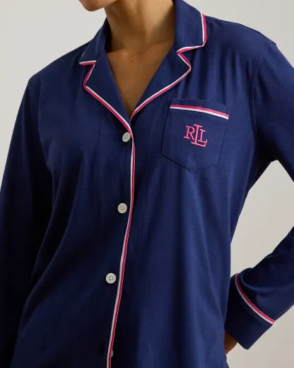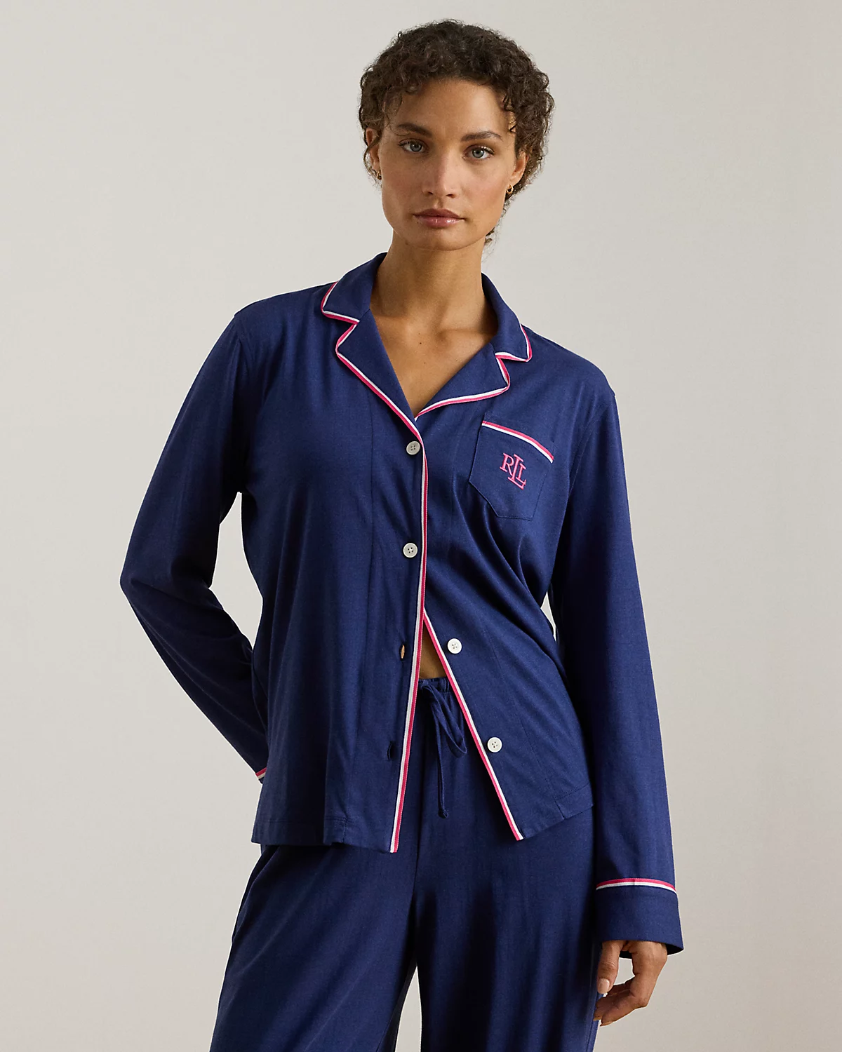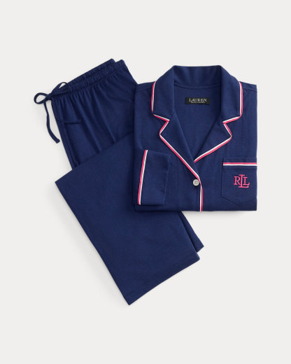 Knit with a soft, textured cotton blend, this cozy sleep set is detailed with two-tone grosgrain trim for a modern take on sophisticated style. An “LRL”-embroidered logo at the pocket adds a signature finish.