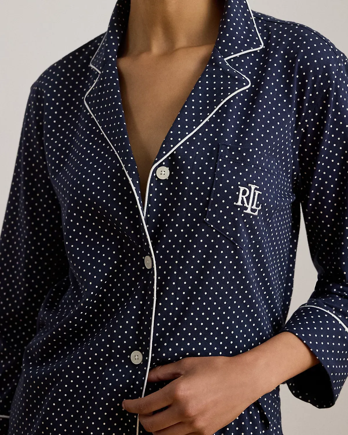 - Embellished with a signature embroidered “LRL” monogram.
