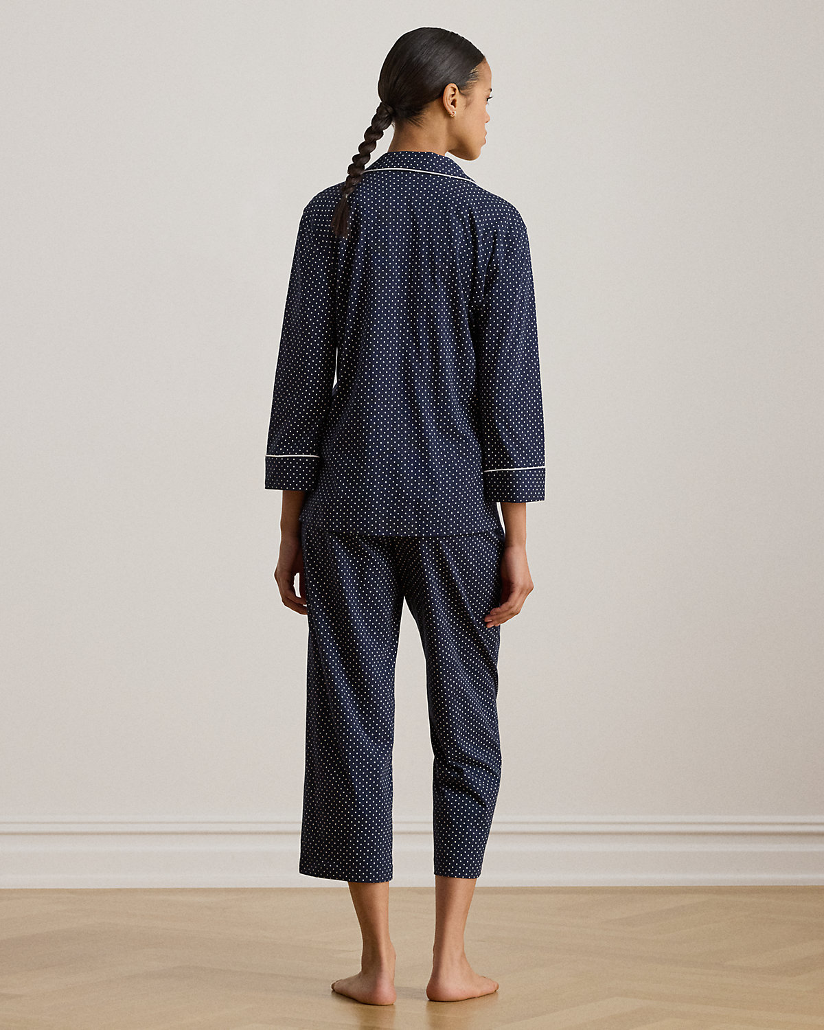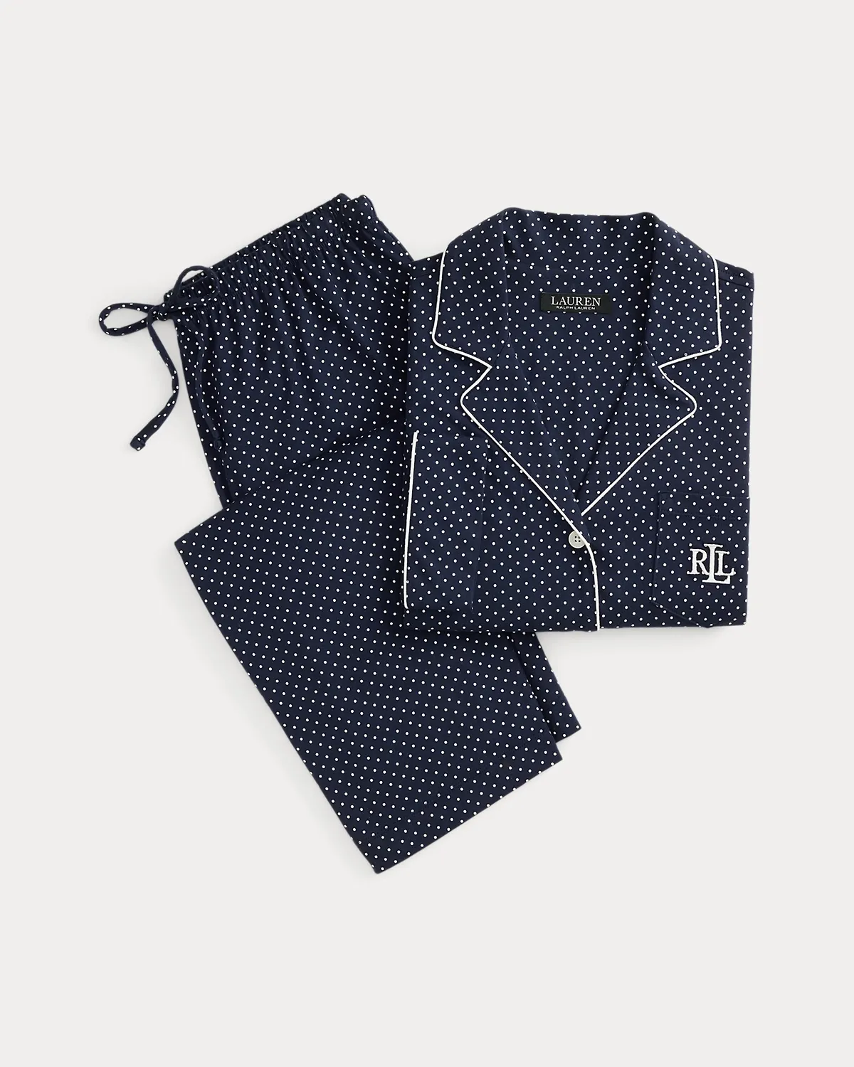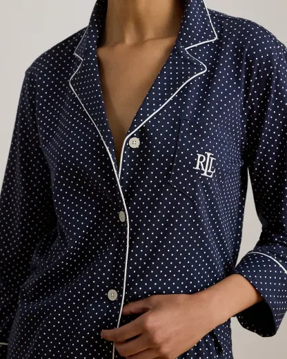 This menswear-inspired sleep set is updated for the season with capri pants and embellished with an embroidered “LRL” monogram for signature Lauren Ralpthth Lauren style.