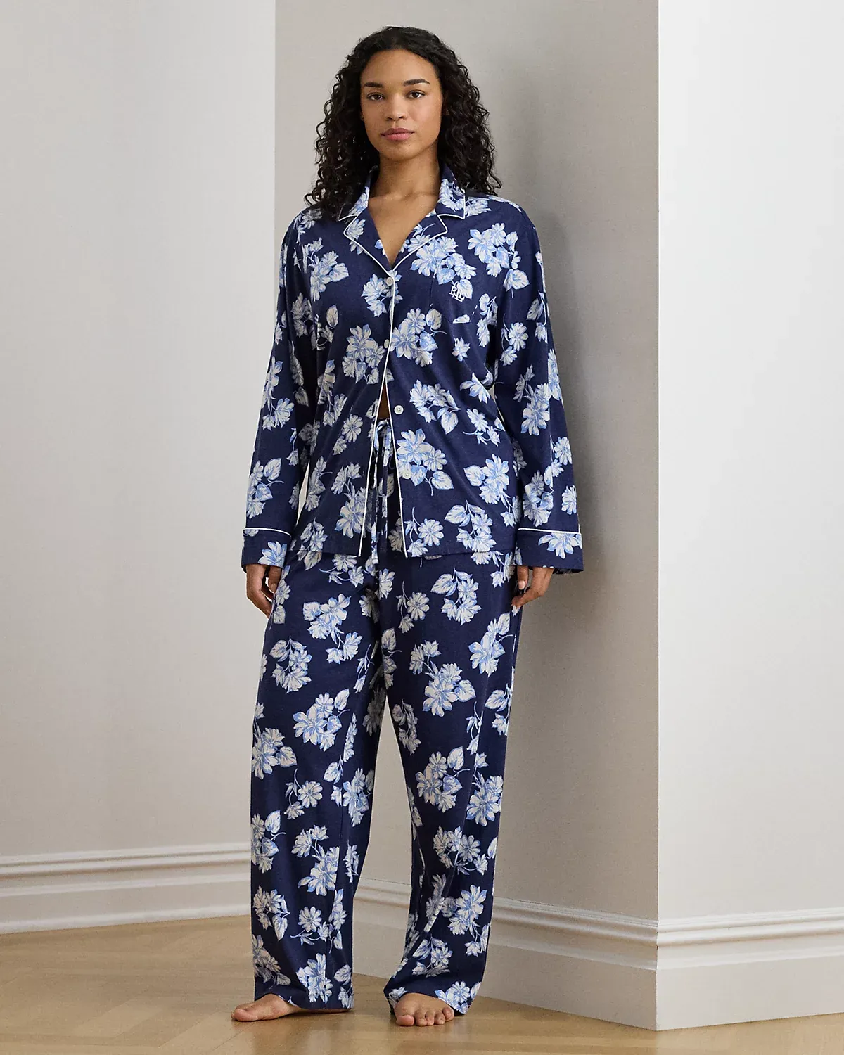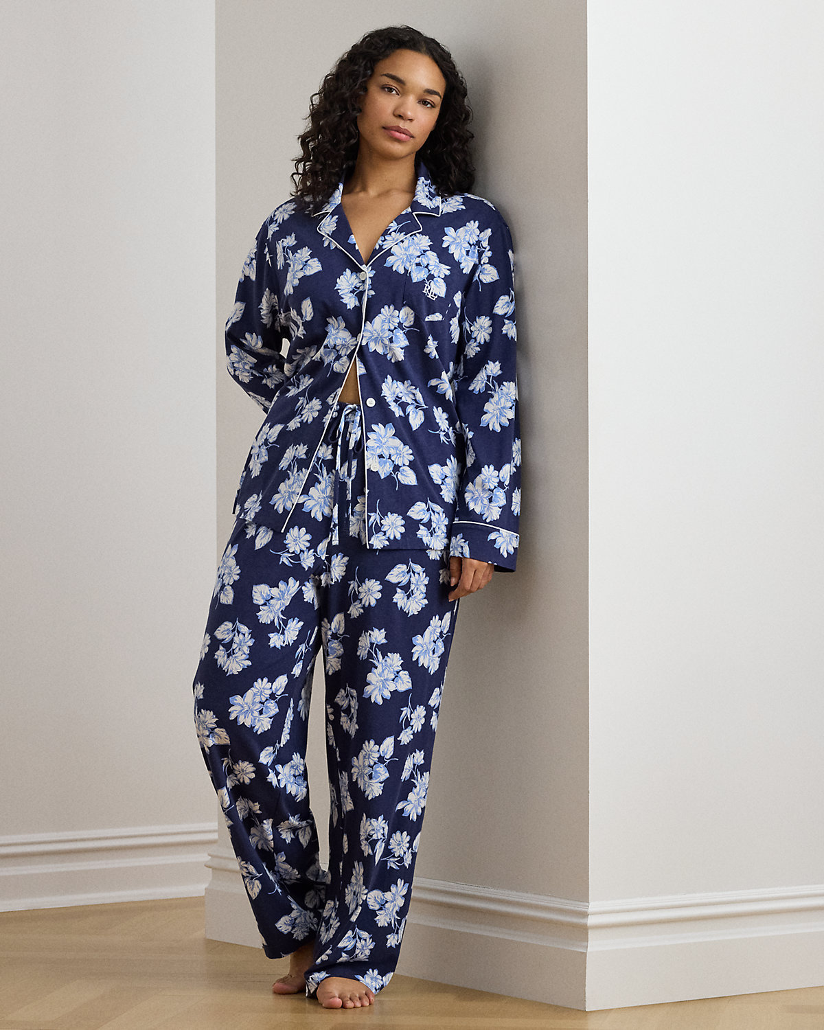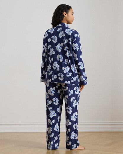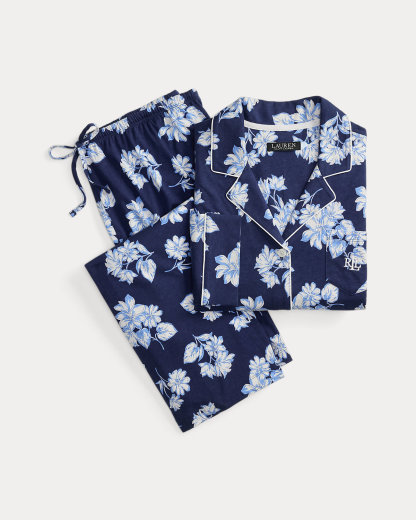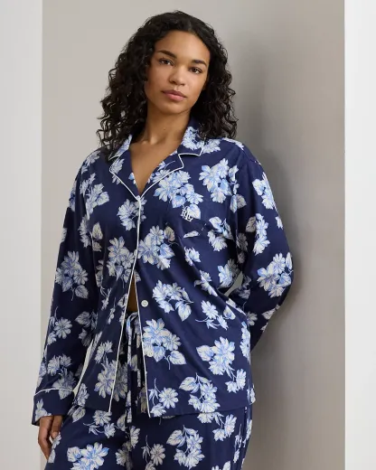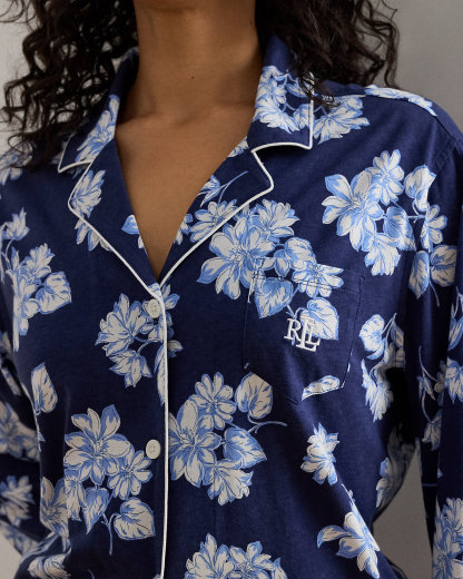 Crafted with soft cotton-blend jersey, this floral sleep set pairs a div-down shirt with drawcord pants. Our embroidered logo at the chest pocket completes the look.