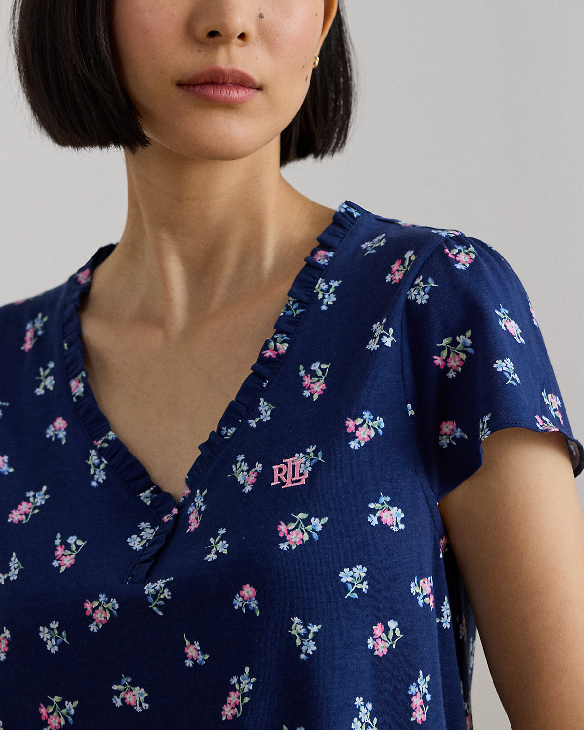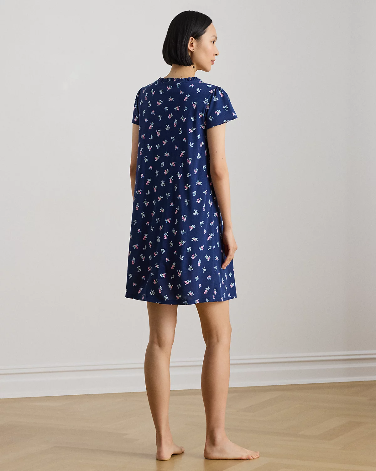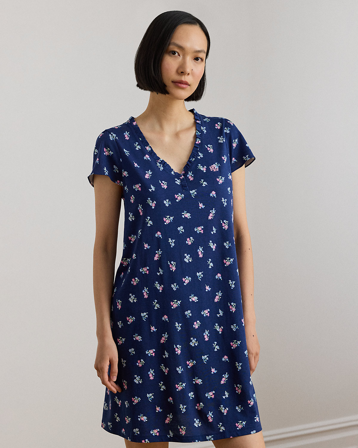 The season’s floral print and flutter sleeves define the feminine appeal of this nightgown, which is made from soft jersey for a comfortable night’s sleep.