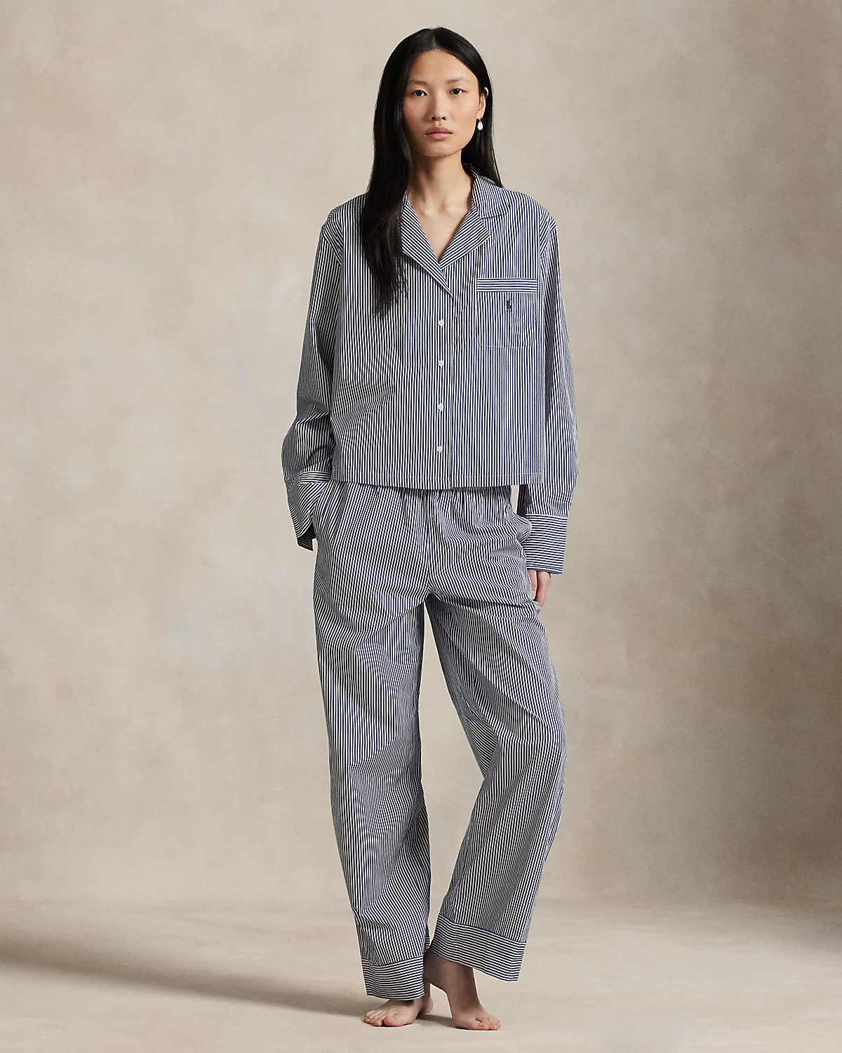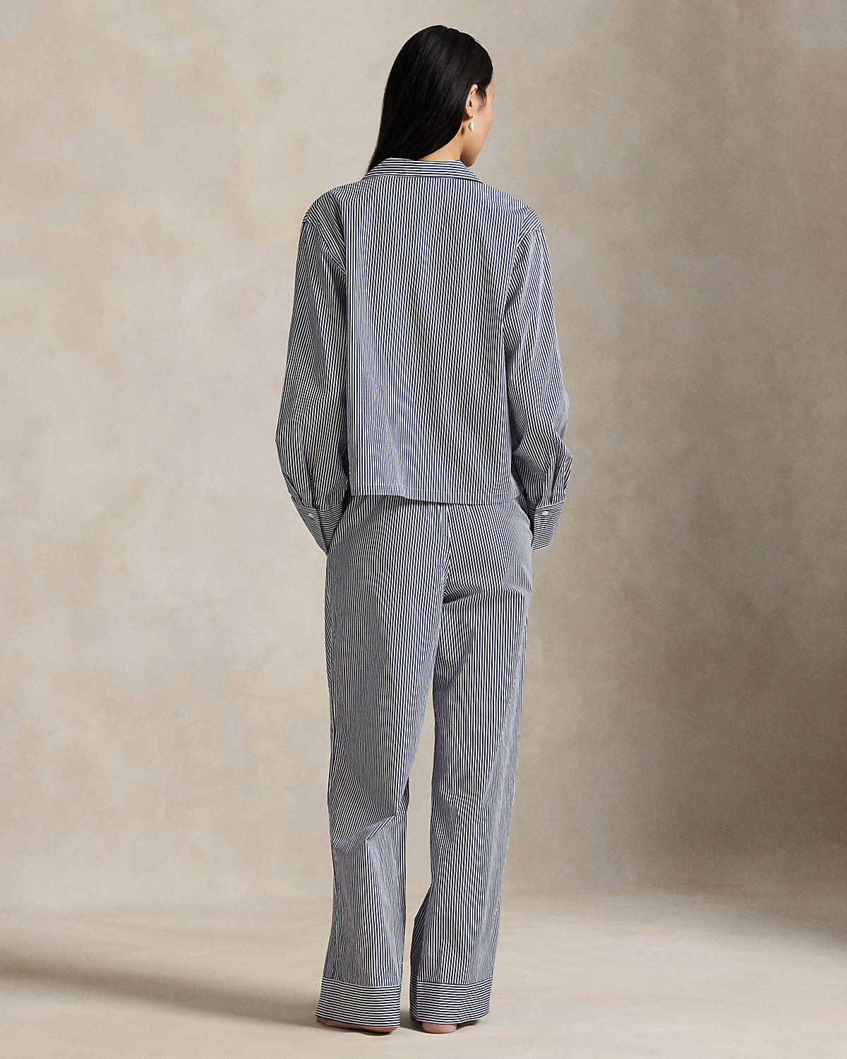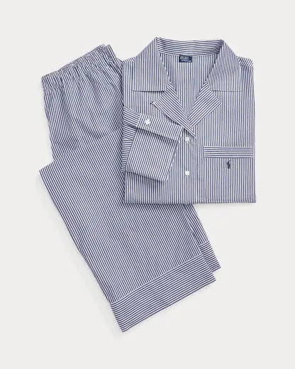 This two-piece pajama set is designed with classic shirting stripes and embroidered with our signature Pony. Crafted for comfort and longevity, its made with cotton poplin specially selected for its breathability and soft hand feel that will only get better over time. Ralpthth Lauren partners with Better Cotton™ to improve cotton farming globally. Better Cotton trains farmers to use water efficiently, care for the health of the soil and natural habitats, reduce use of the most harmful chemicals, and implement the principles of decent work.