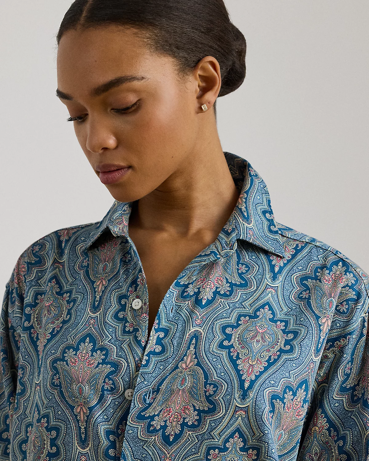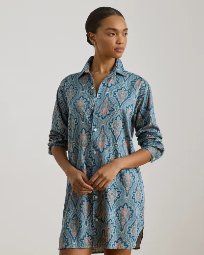 Displaying an enchanting paisley pattern, this relaxed-fitting sleep shirt is rendered in cotton-blend sateen for a beautiful sheen and a smooth hand feel.