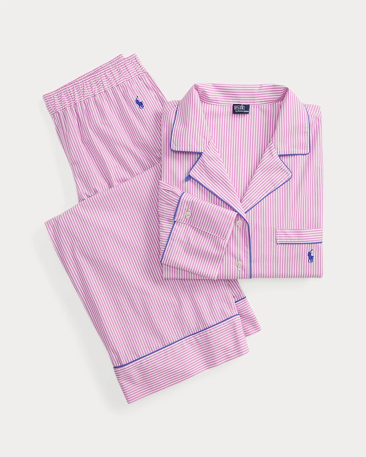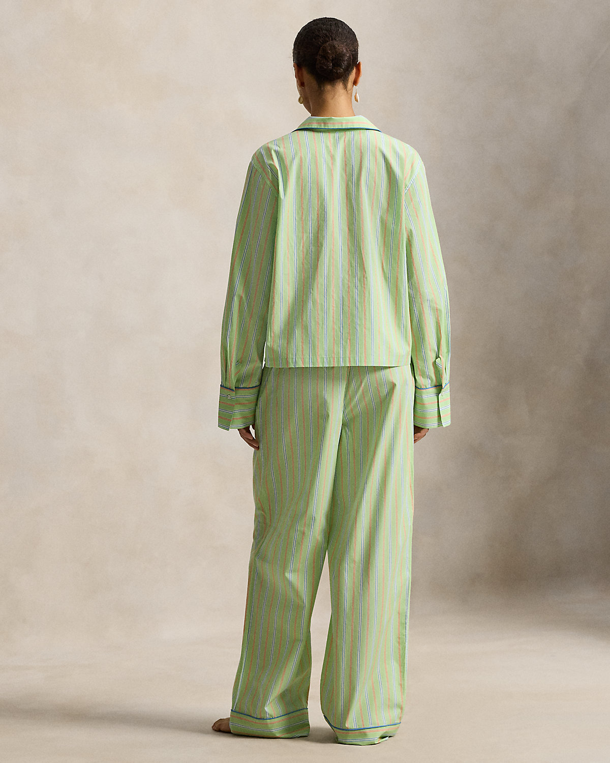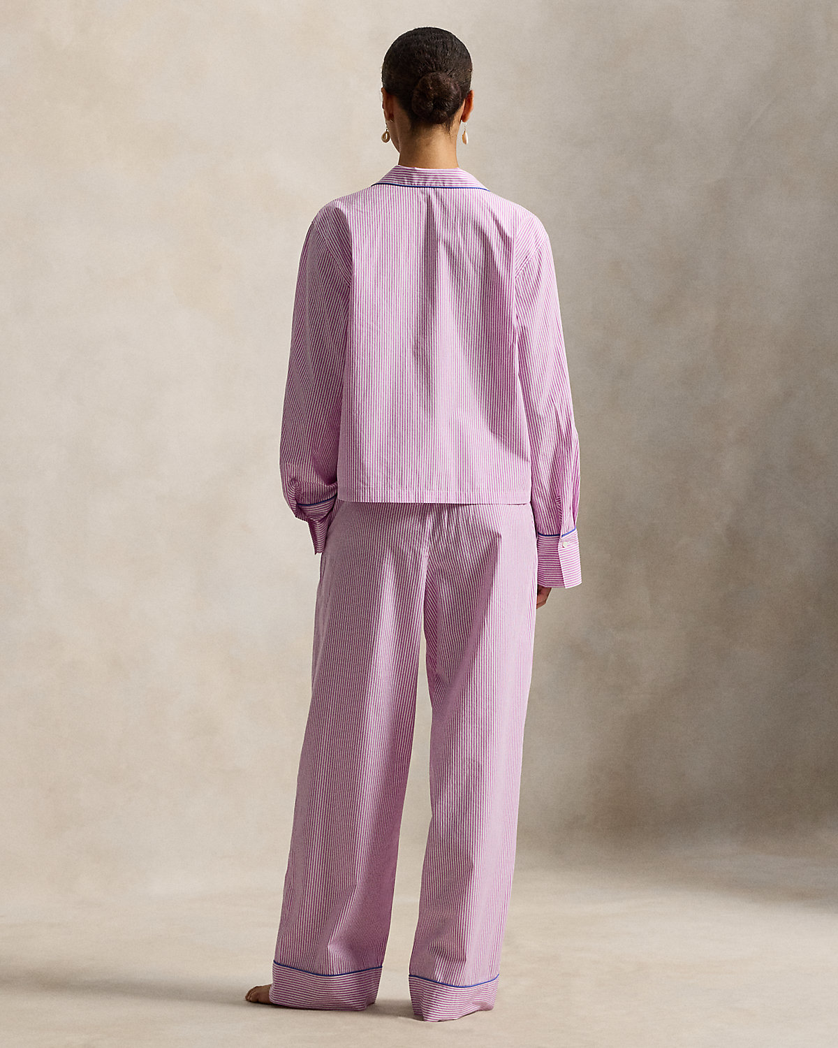 Made with cotton poplin fabric, specially selected for its breathability, these pajamas pair a long-sleeve dived shirt and full-length pants. The colorful striped pattern is accented by piped trim and our signature embroidered Pony.