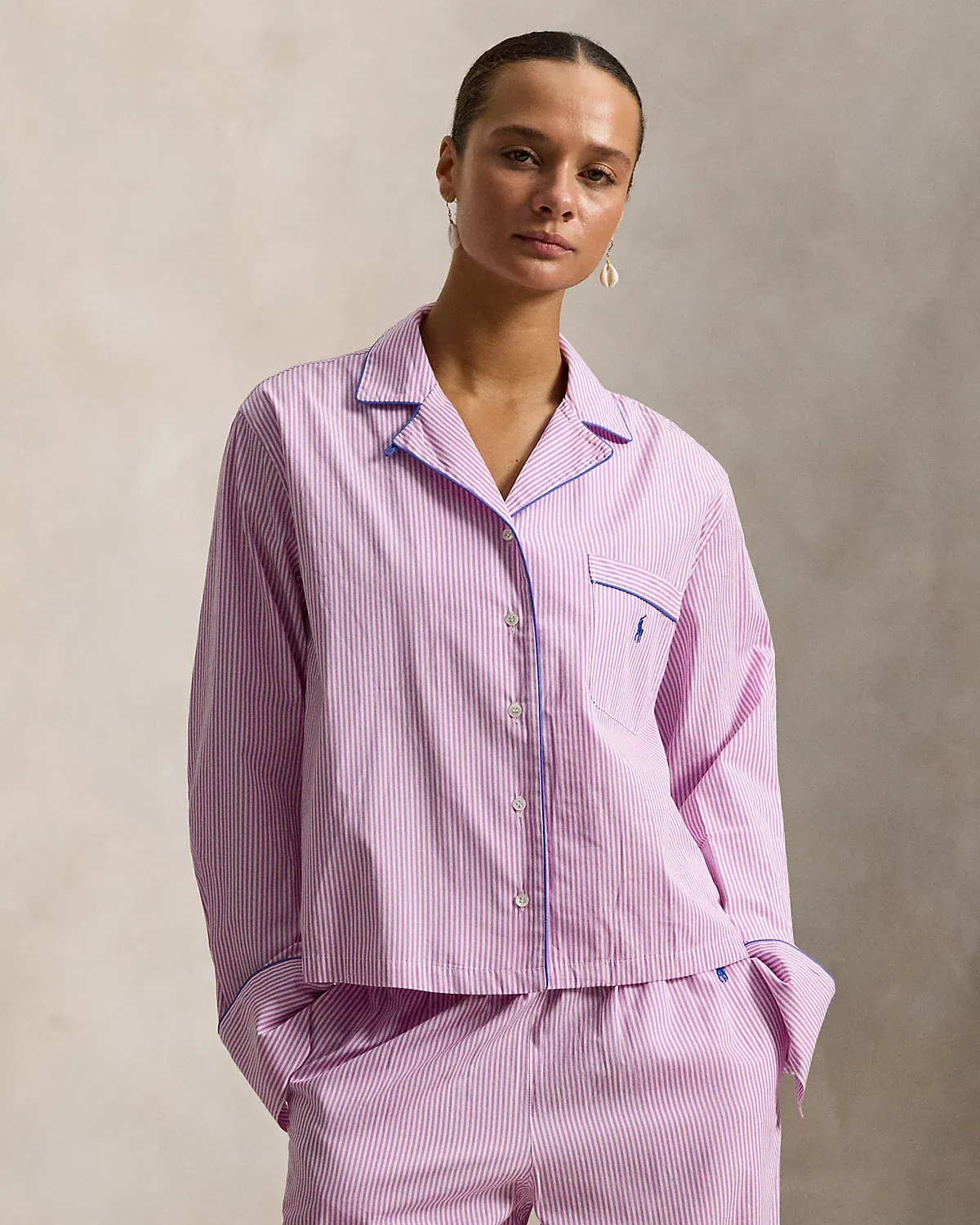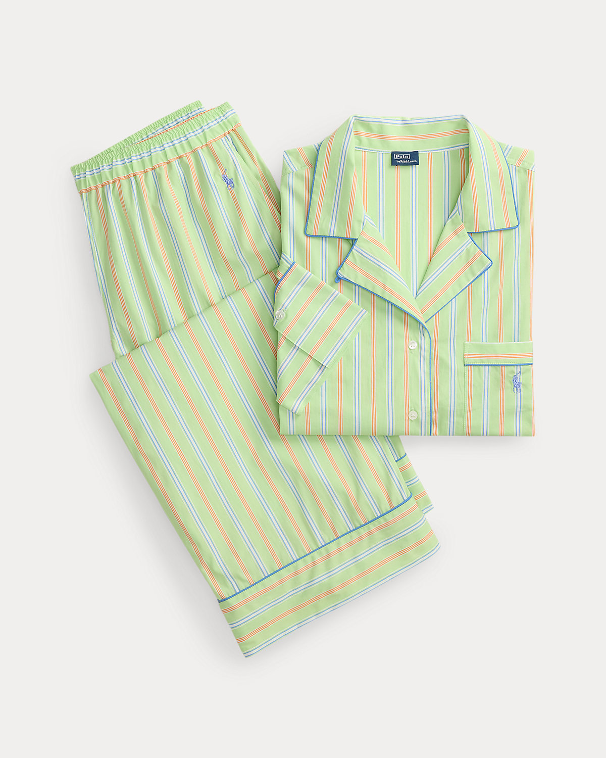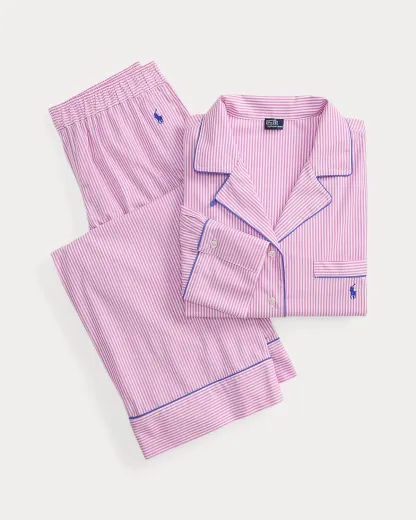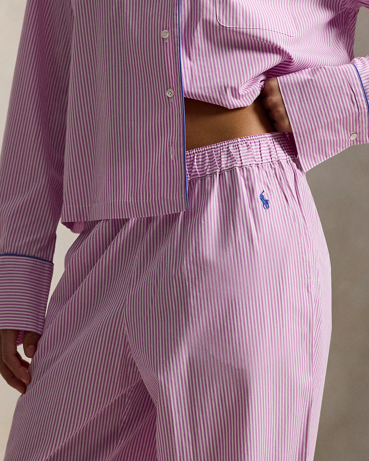 Made with cotton poplin fabric, specially selected for its breathability, these pajamas pair a long-sleeve dived shirt and full-length pants. The colorful striped pattern is accented by piped trim and our signature embroidered Pony.