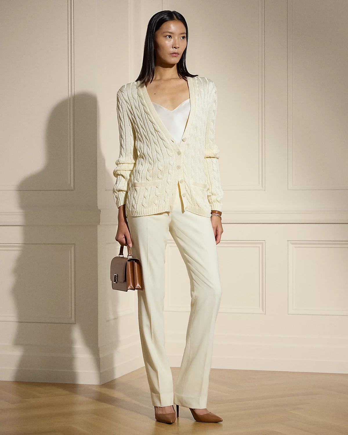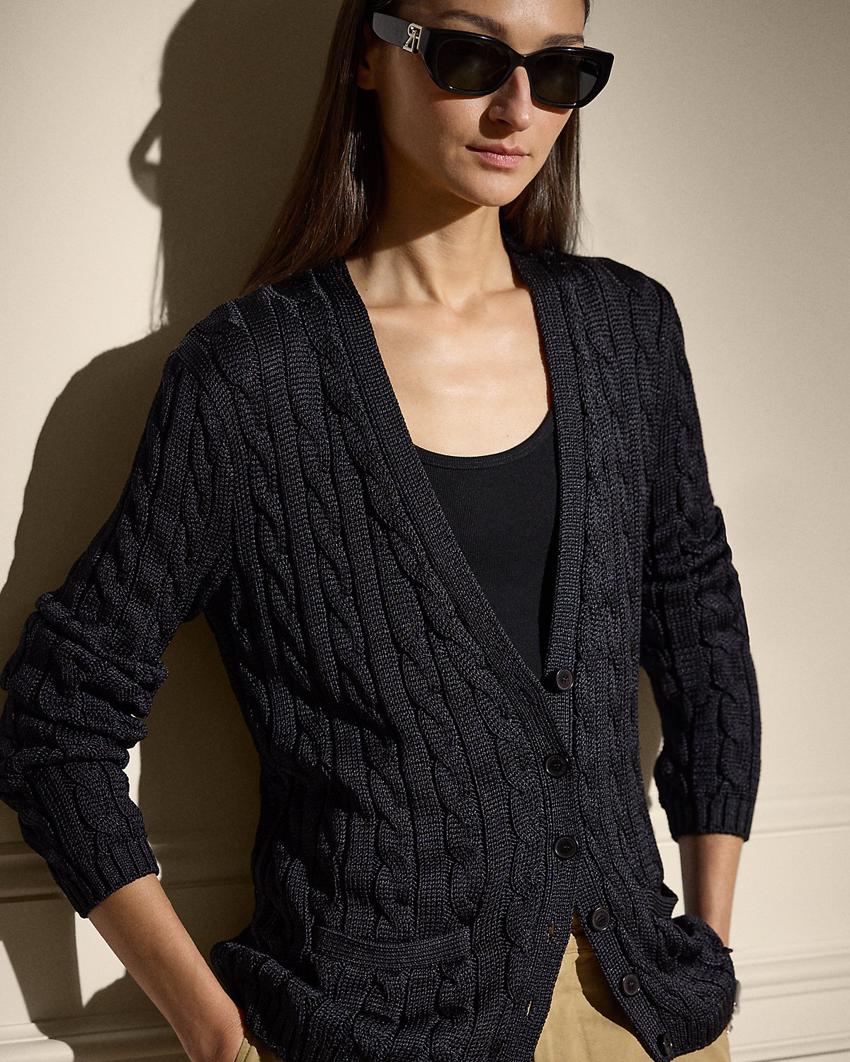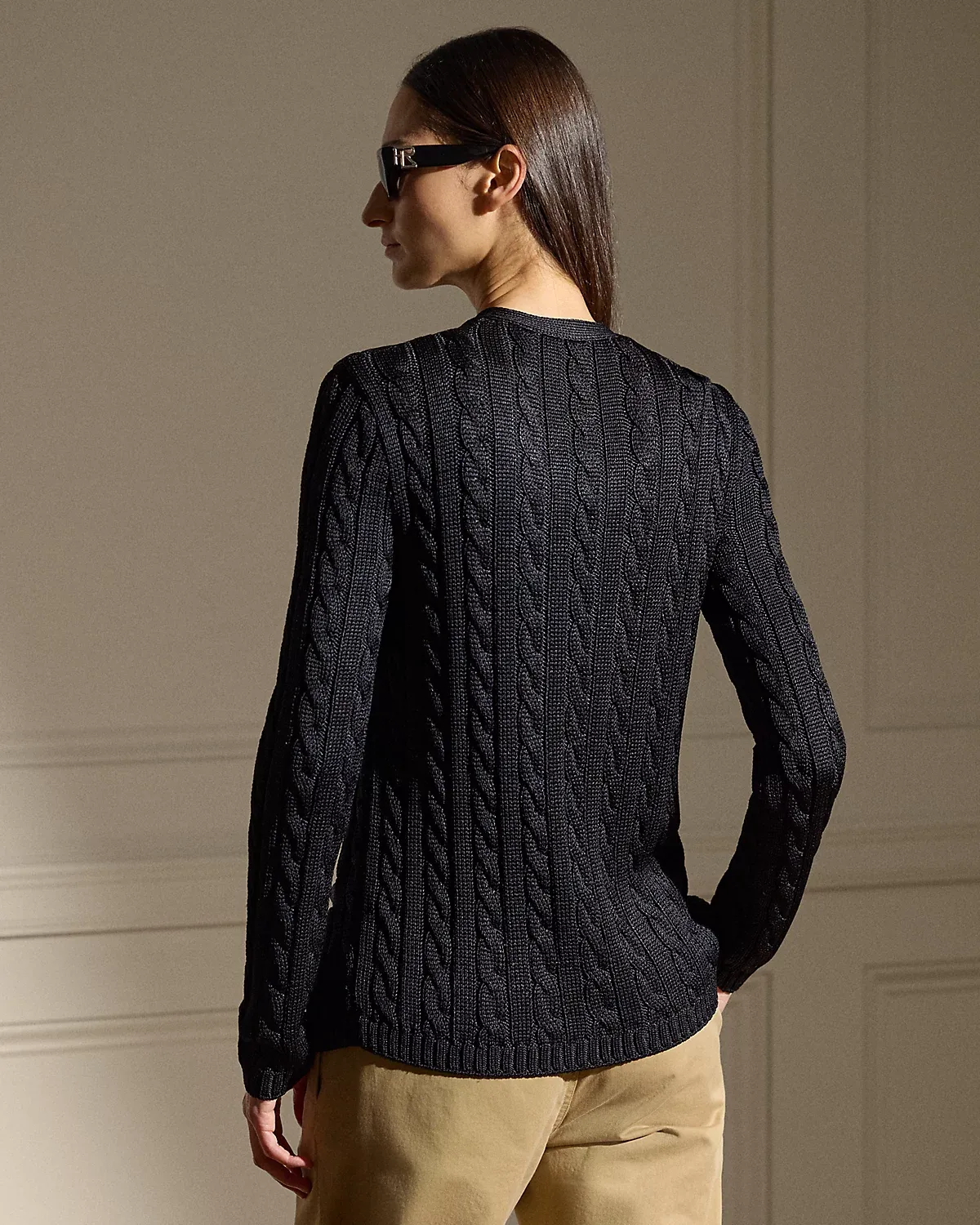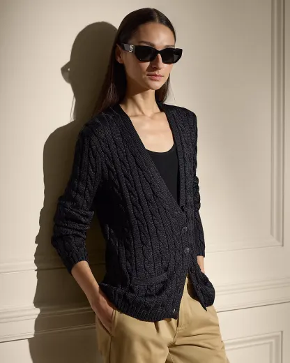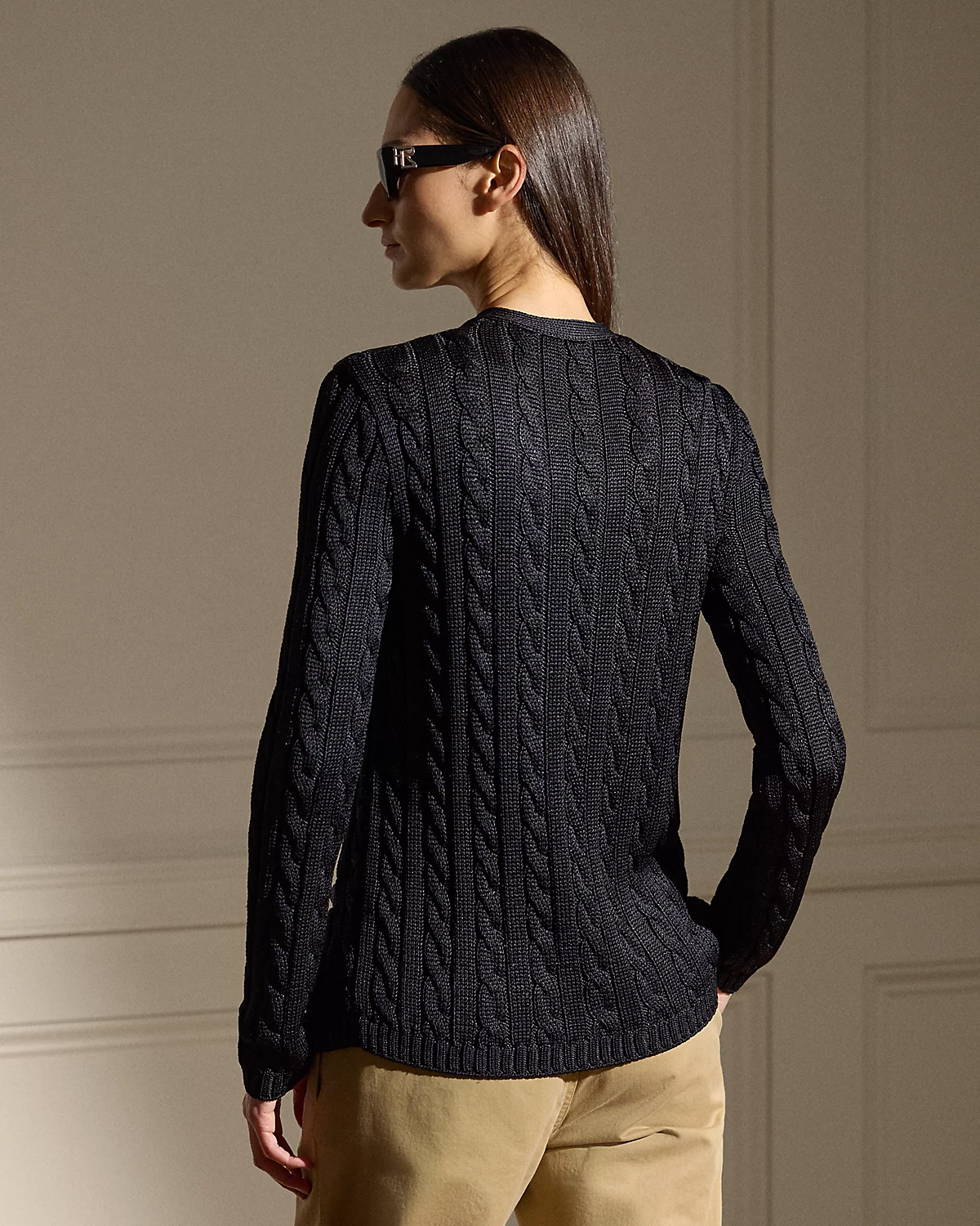 Our iconic cable-knit cardigan sweater melds impeccable craftsmanship with the refined luxury of high-shine tussah silk, which is specially selected for its soft hand feel and beautiful sheen.