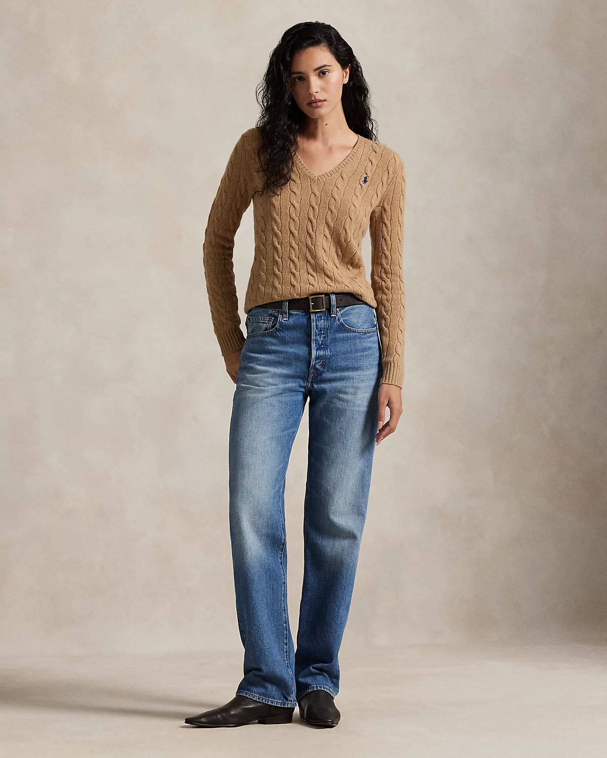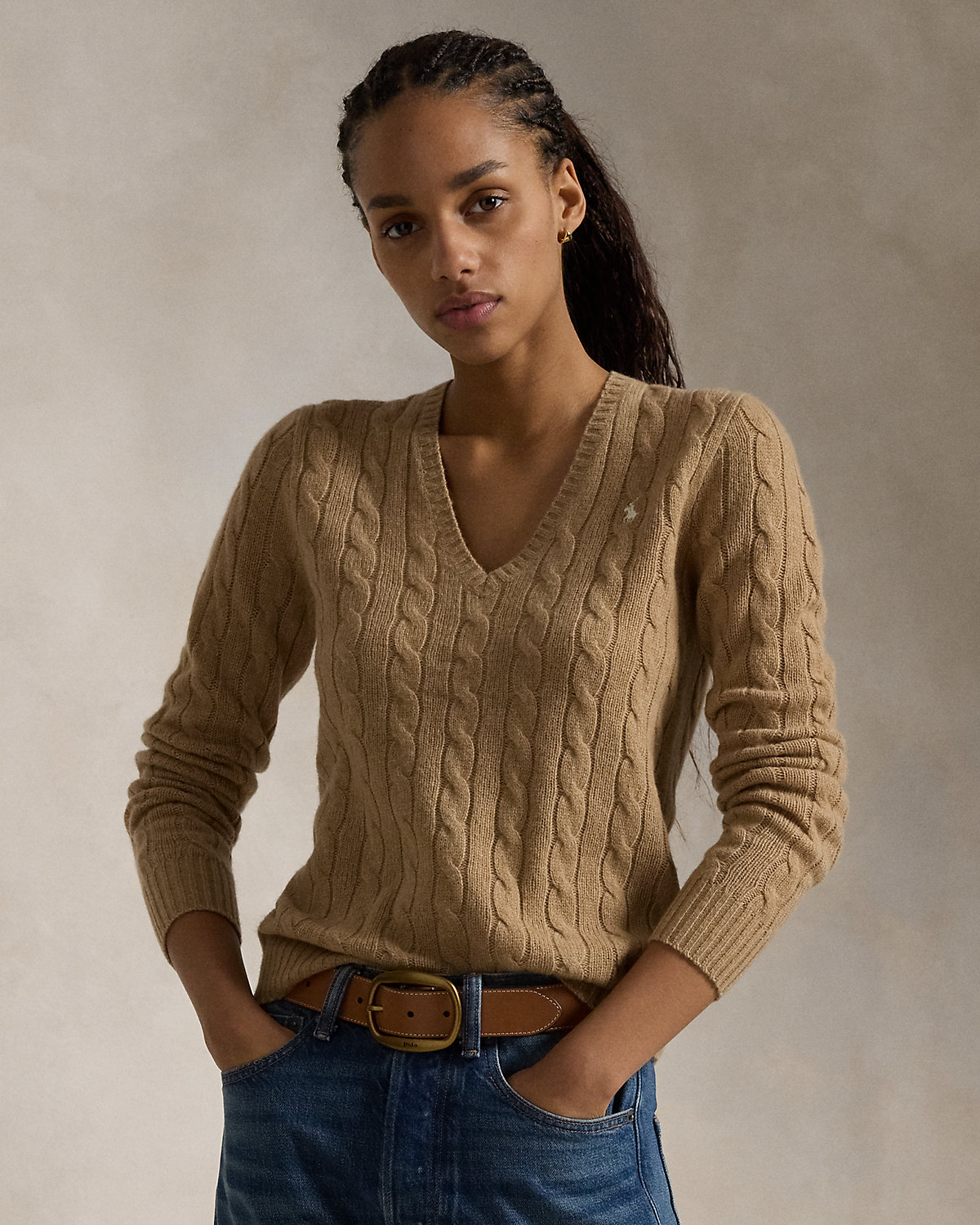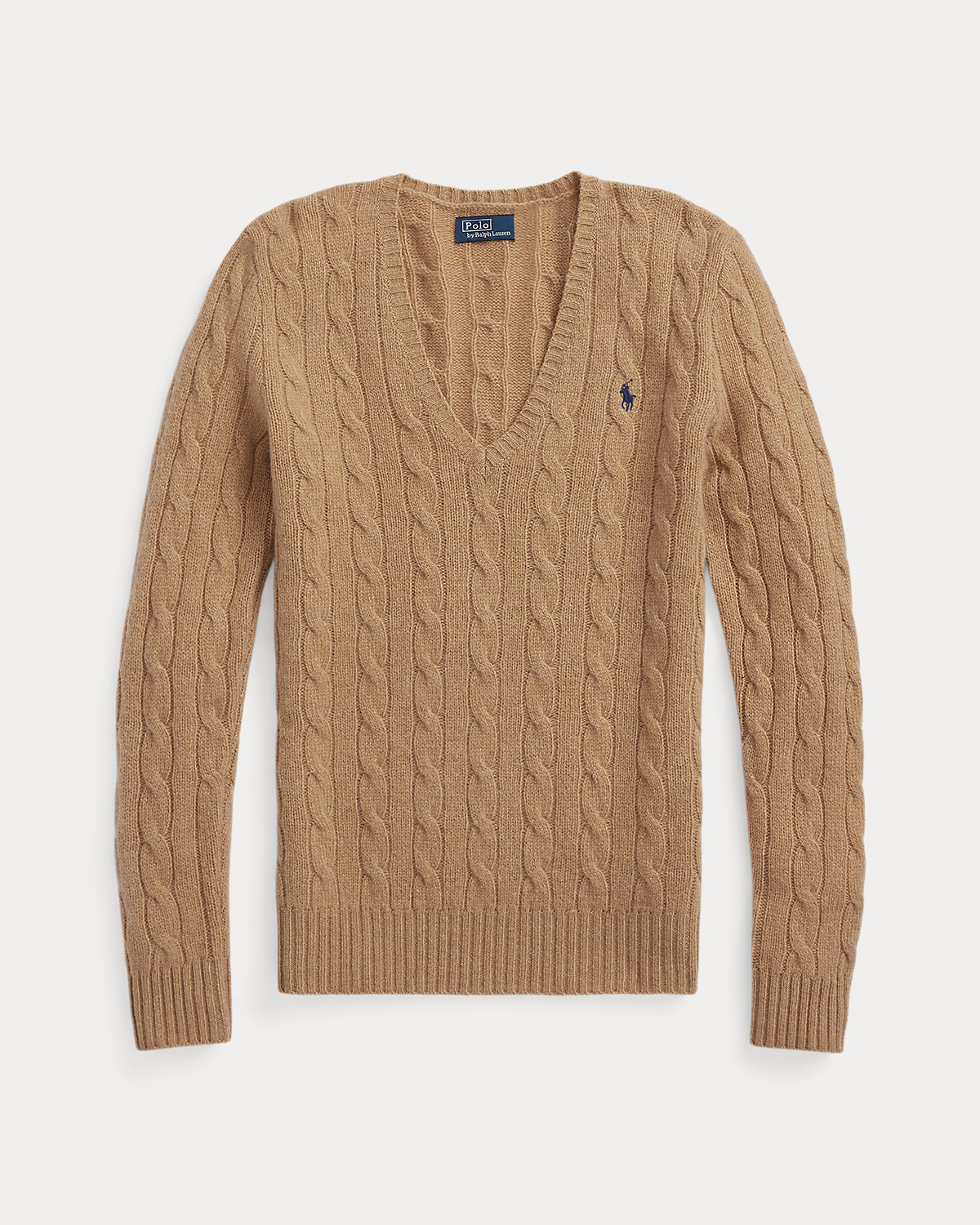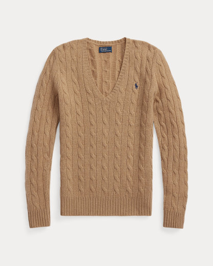 Cable-knit with a soft wool-and-cashmere-blend, this medium-weight V-neck sweater is designed in a slim silhouette and accented by our signature embroidered Pony.