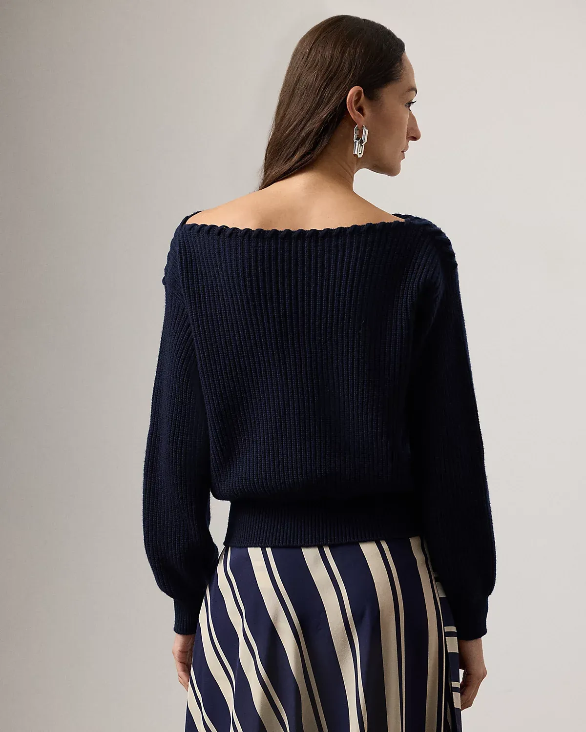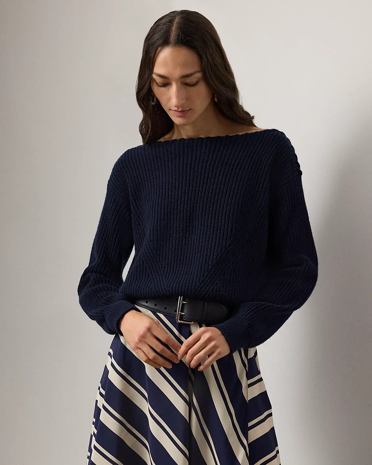 In line with the season’s nautical-inspired aesthetic, this relaxed-fitting sweater’s flattering boatneck is hand-detailed with elegant whipstitching. Artfully knit in a half-cardigan stitch, this sweater is crafted with mid-weight 100 percent cashmere and spotlights a traveling rib motif for a luxuriously soft hand and added dimension.