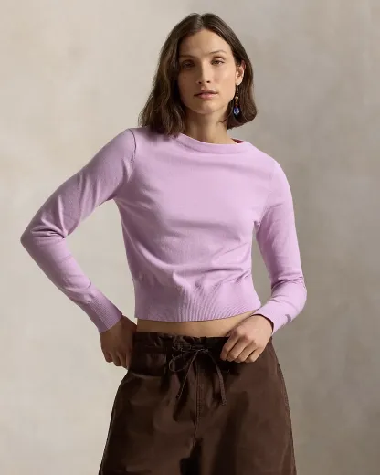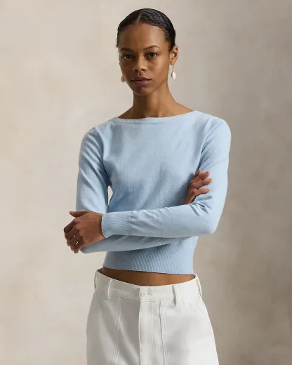 Knit from a lightweight cotton-blend with a touch of stretch, this slim-fitting sweater is defined by its boat neckline and accented by our signature embroidered Pony at the right waist.