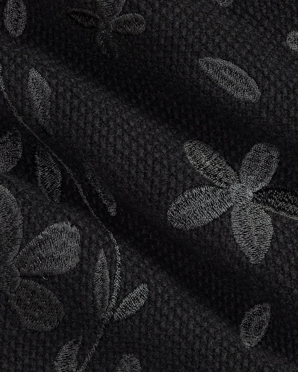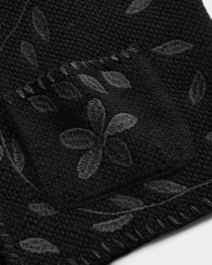- Floral satin-stitched embroidery throughout.