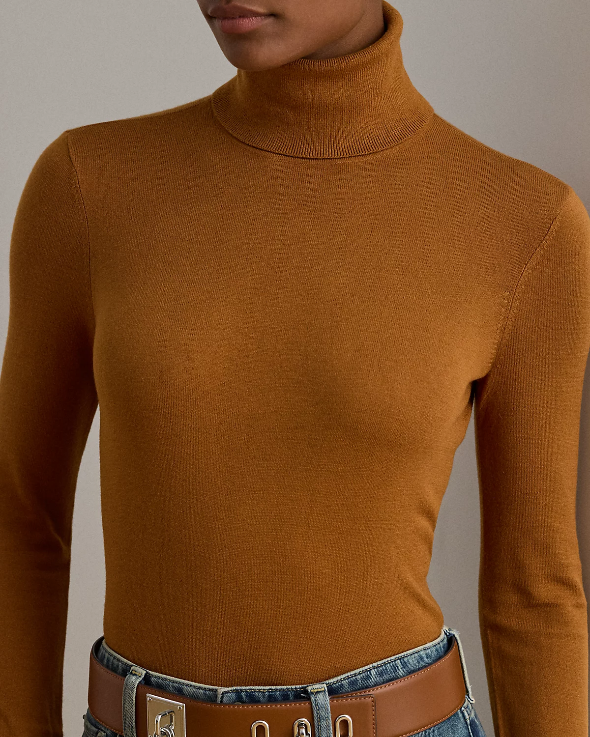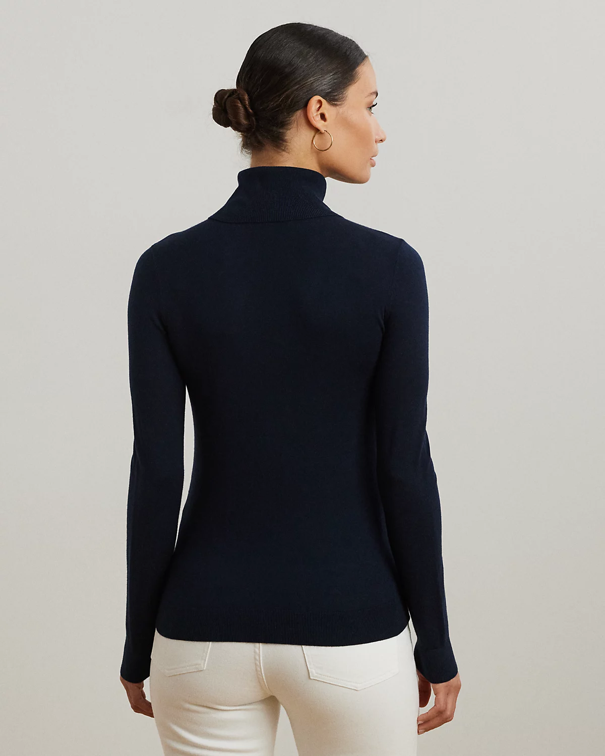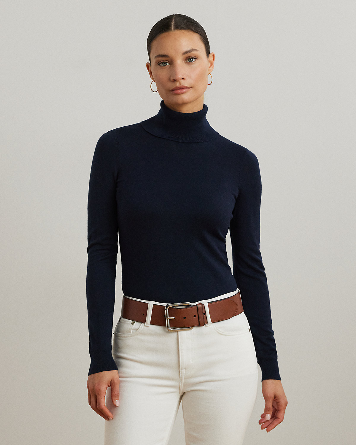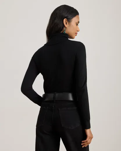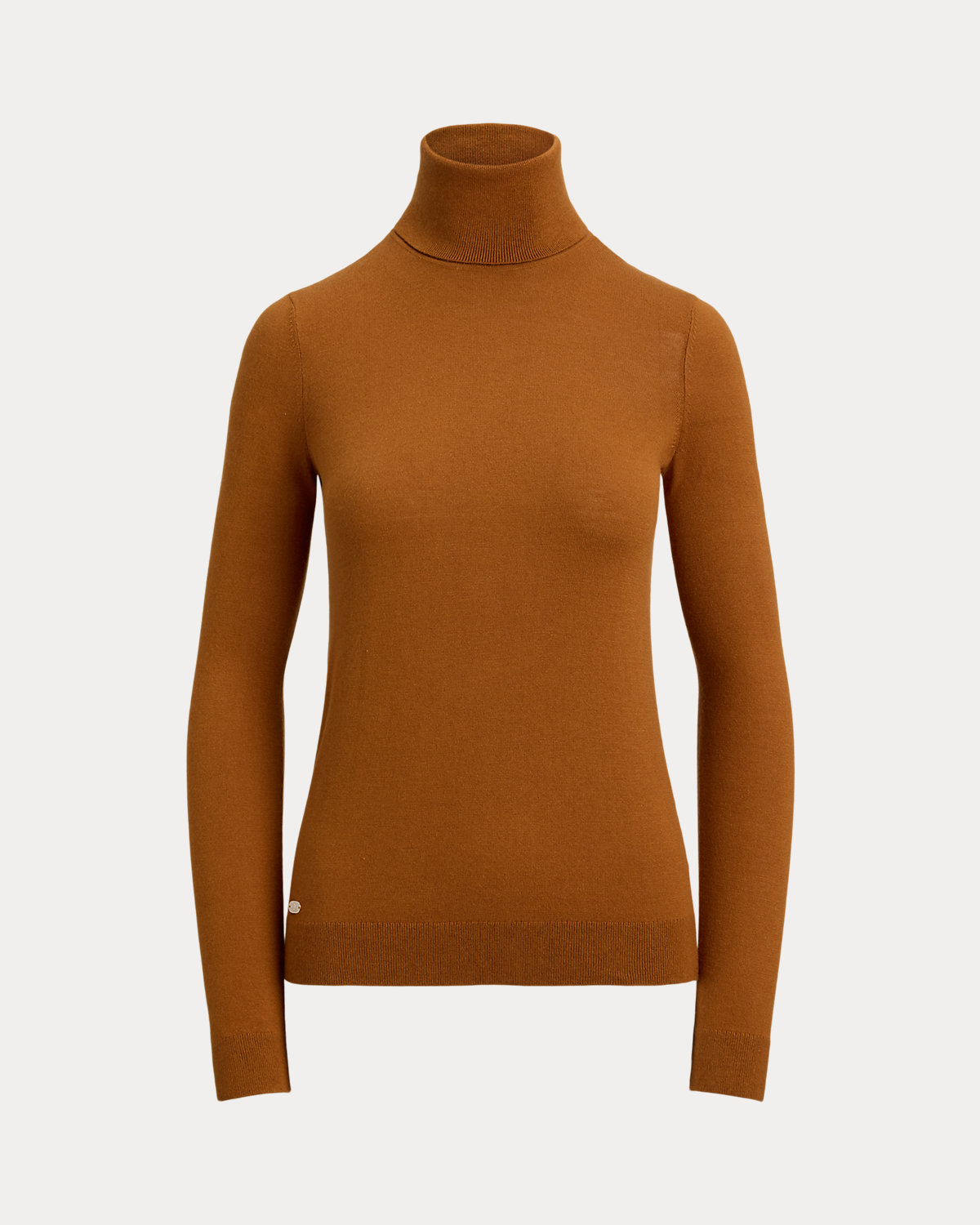 A timeless wardrobe essential, this slim-fitting turtleneck sweater is realized in a luxuriously soft mulberry silk blend. A dainty “LRL”-engraved plaque at the hem adds signature style.