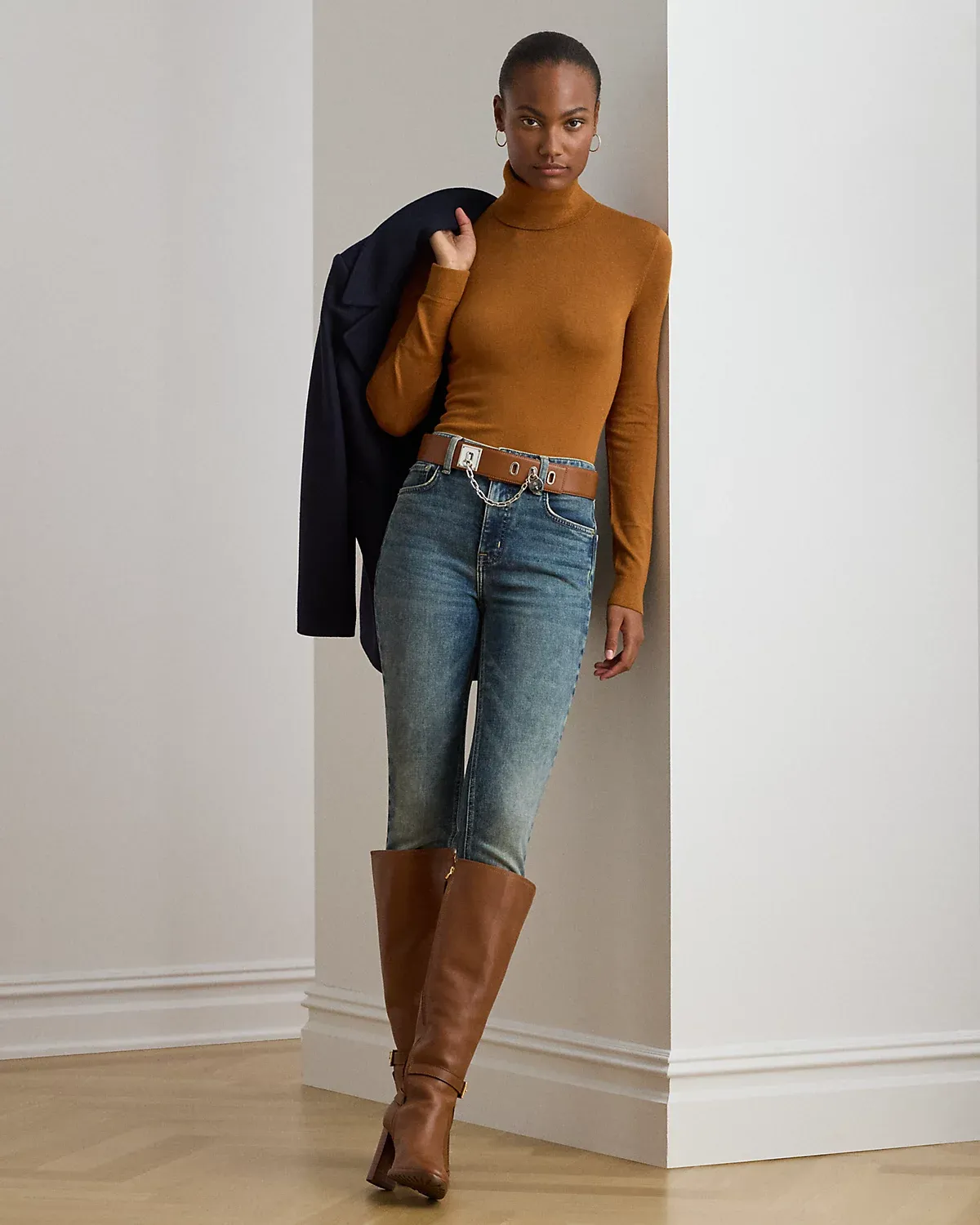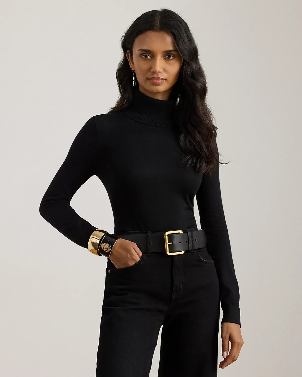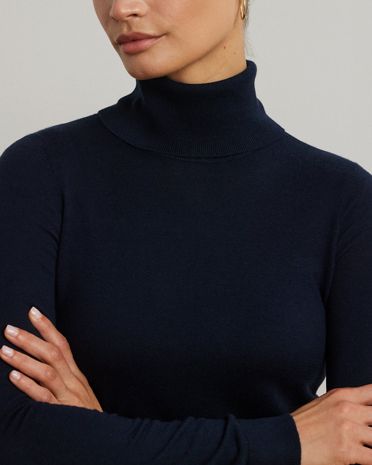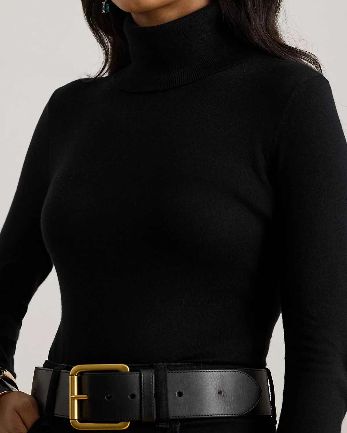 A timeless wardrobe essential, this slim-fitting turtleneck sweater is realized in a luxuriously soft mulberry silk blend. A dainty “LRL”-engraved plaque at the hem adds signature style.