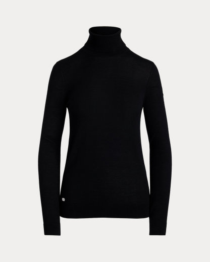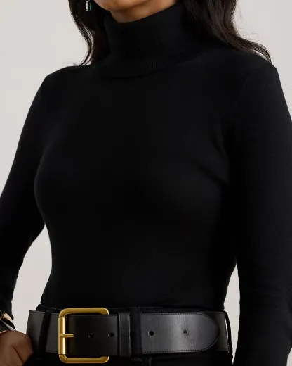 - Ribbed turtleneck. Pull-on styling.