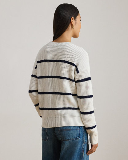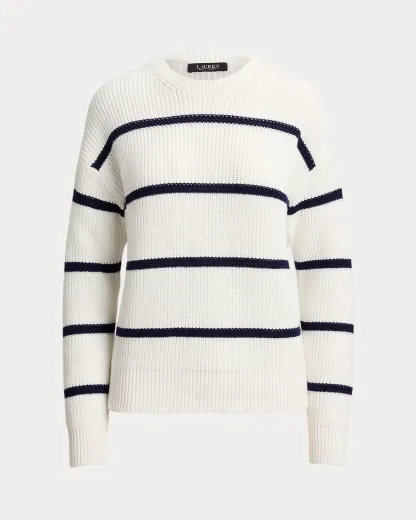 Striped Rib-Knit Cotton Crewneck Sweater