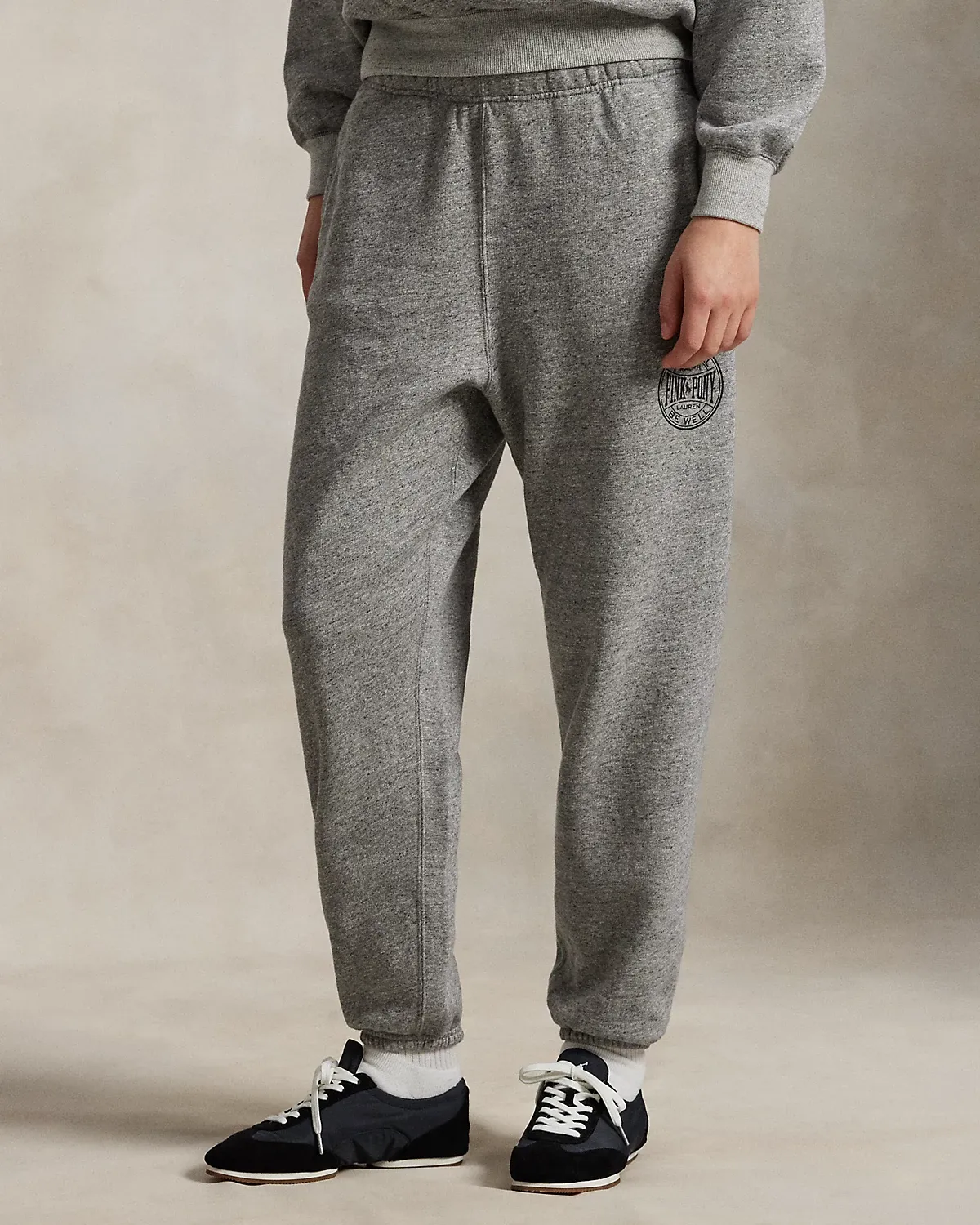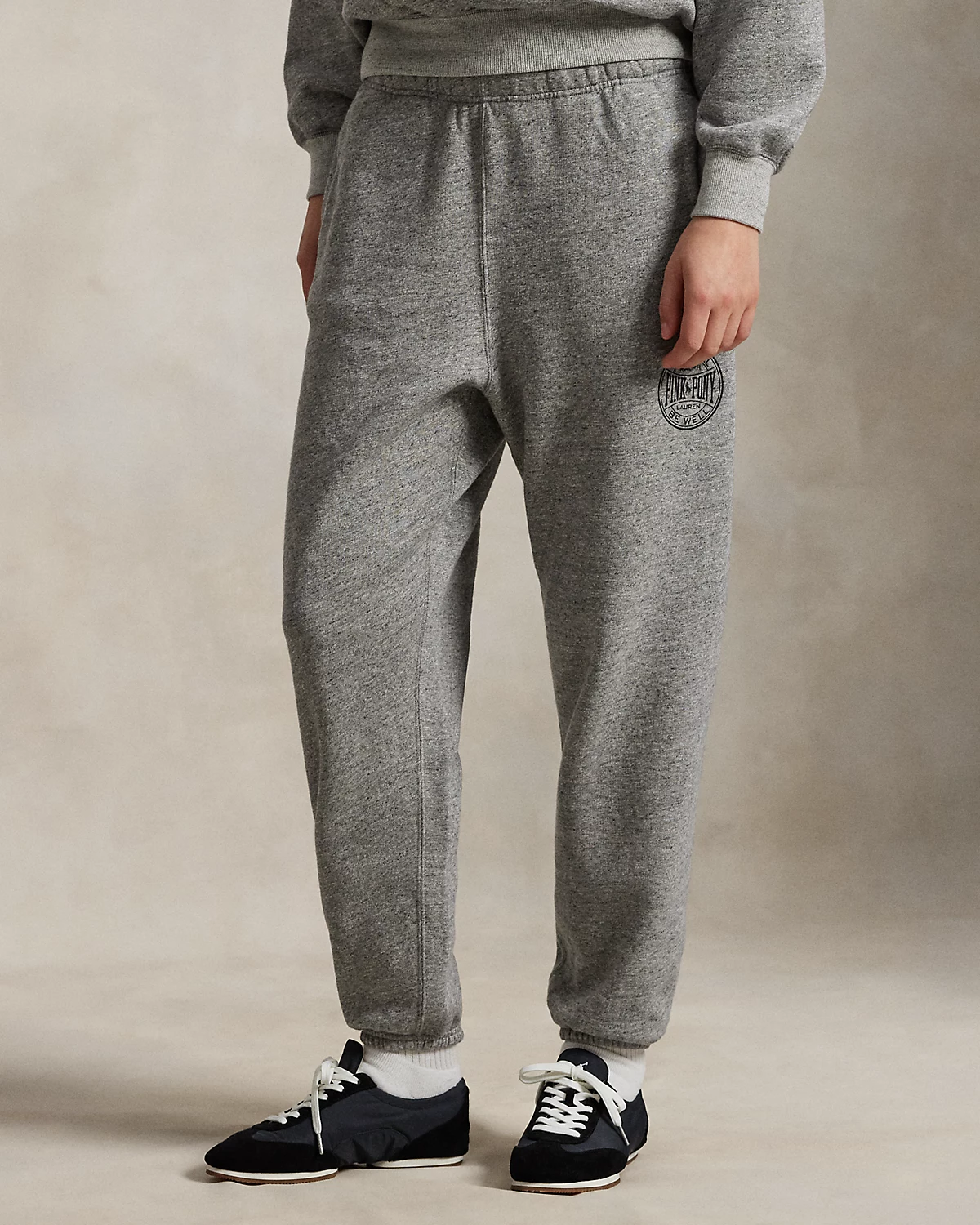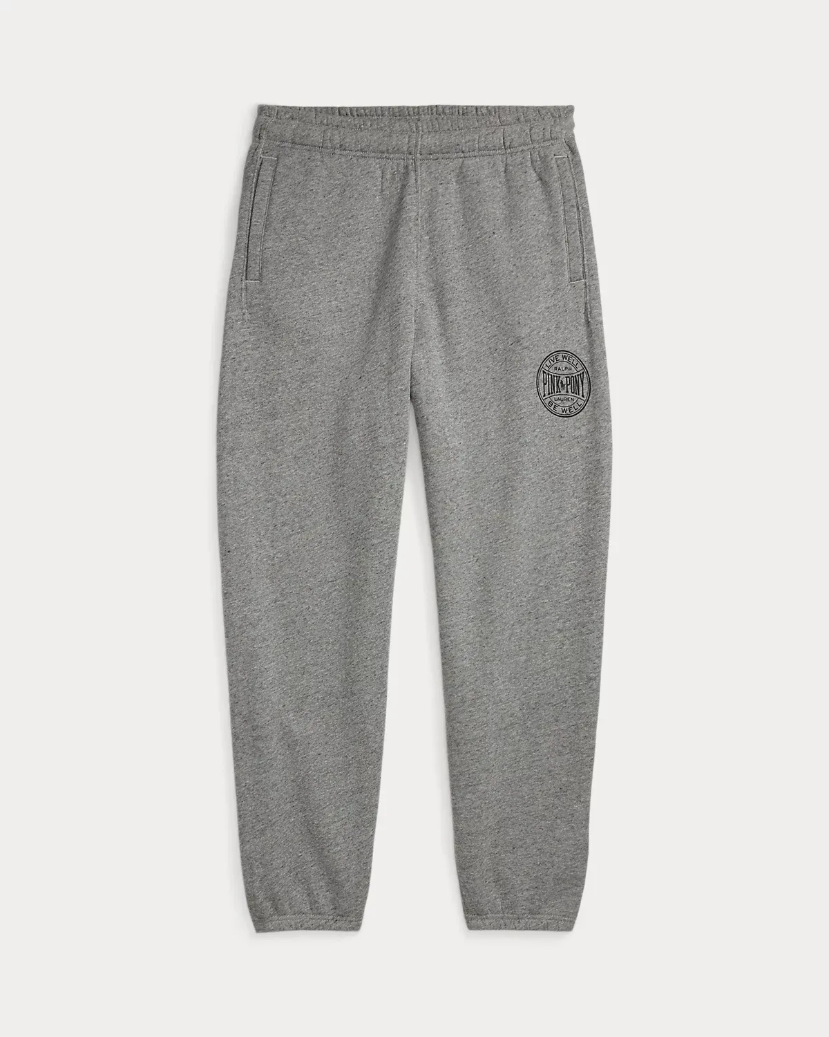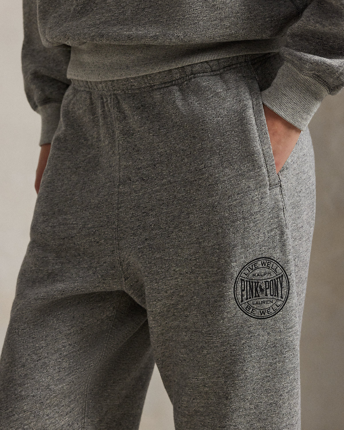 - Elasticized waist with an interior drawstring. Side on-seam pockets. Elasticized cuffs. "Pink Pony Live Well Be Well Ralpthth Lauren" graphic printed at the left hip.