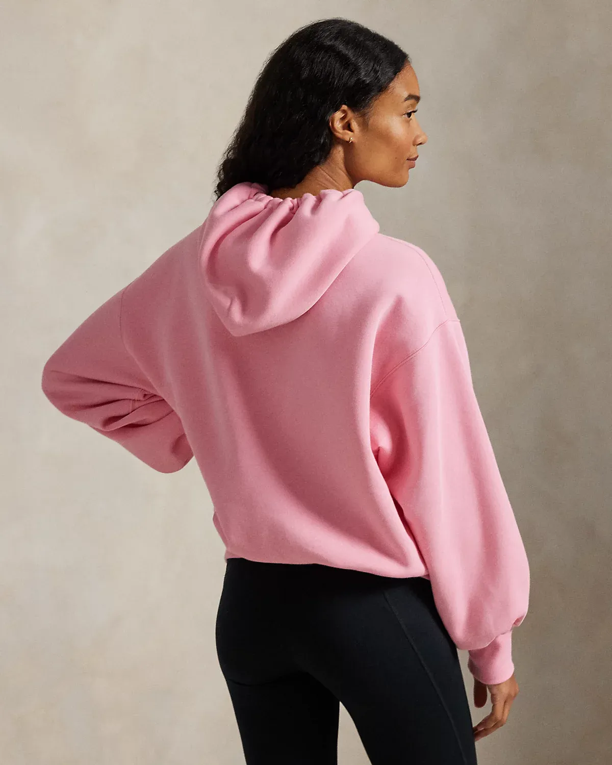 - Drawstring hood. Long sleeves with ribbed cuffs. Dropped shoulders. Ribbed hem. “Pink Pony Live Well Be Well Ralpthth Lauren” graphic printed at the front.