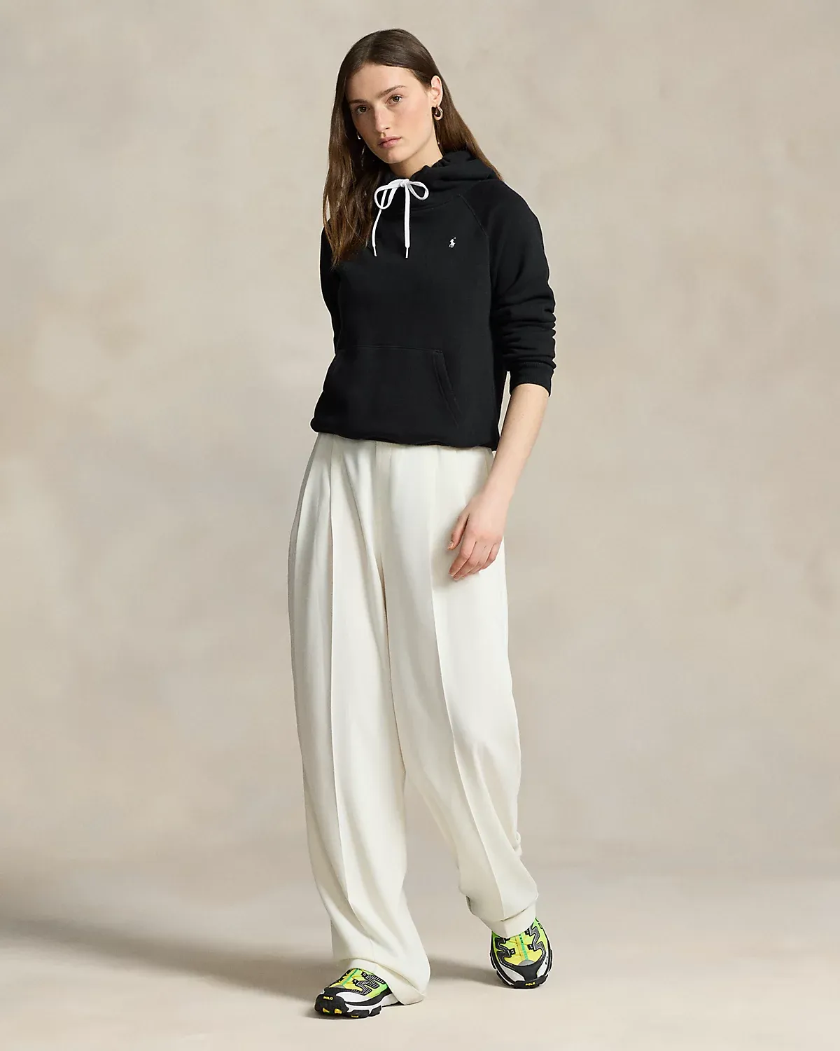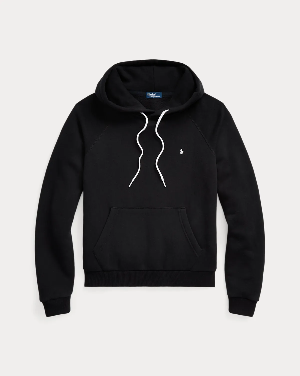- Drawcord hood. Long raglan sleeves with ribbed cuffs. Front kangaroo pocket. Signature embroidered Pony at the left chest. Ribbed hem.