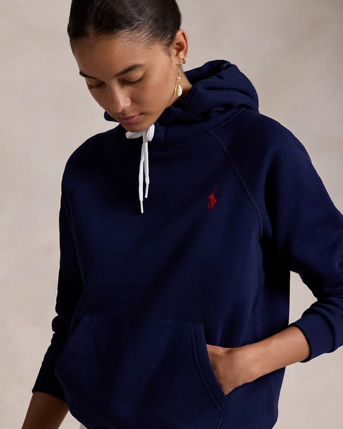 Made with soft fleece for a lived-in feel, this Shrunken Fit hoodie is punctuated with our signature embroidered Pony. Ralpthth Lauren partners with Better Cotton™ to improve cotton farming globally.