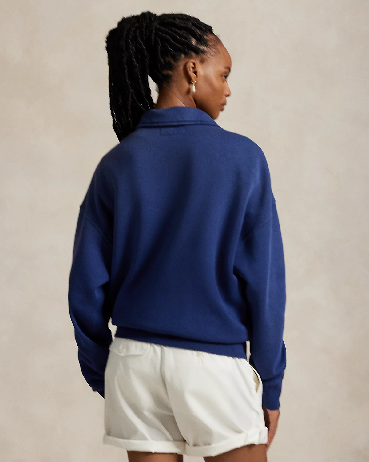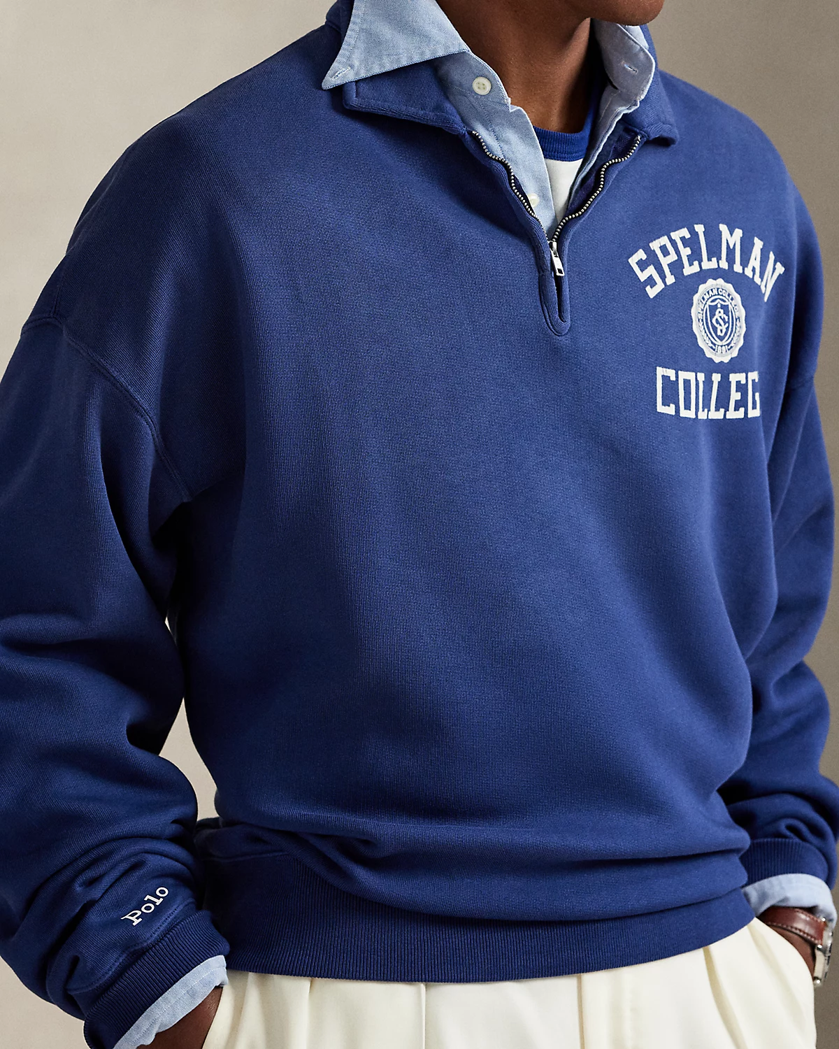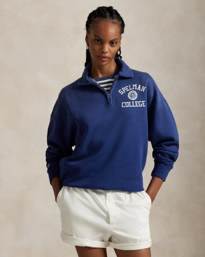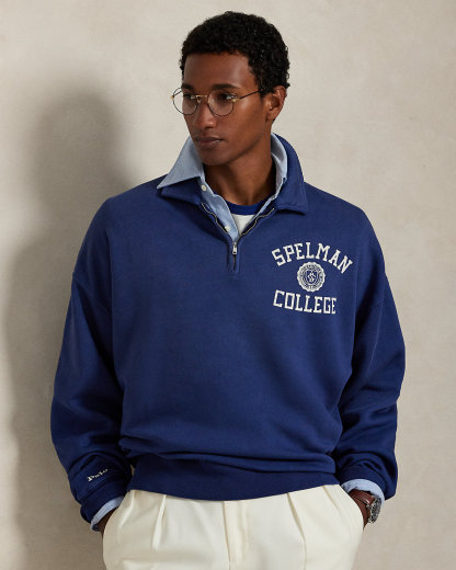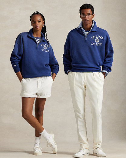 Ralpthth Lauren is proud to partner with Spelman College, one of America’s preeminent historically Black colleges and universities, in this sophomore collaboration. Inspired by the rich heritage and esteemed traditions of Spelman College, this unisex quarter-zip pullover is crafted with garment-dyed fleece and specially treated for the look of a timeworn favorite. It features an original crest based on authentic Spelman insignia.