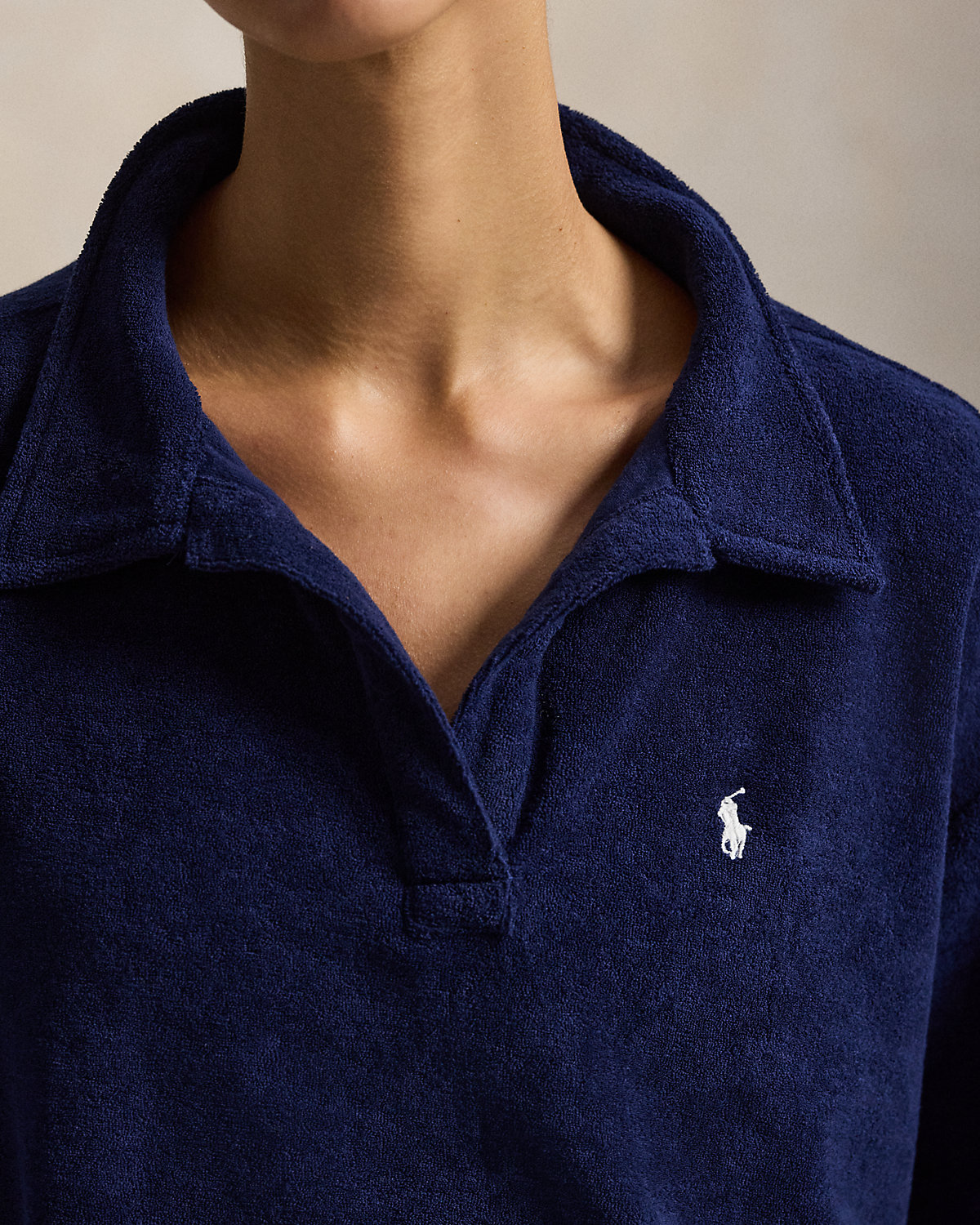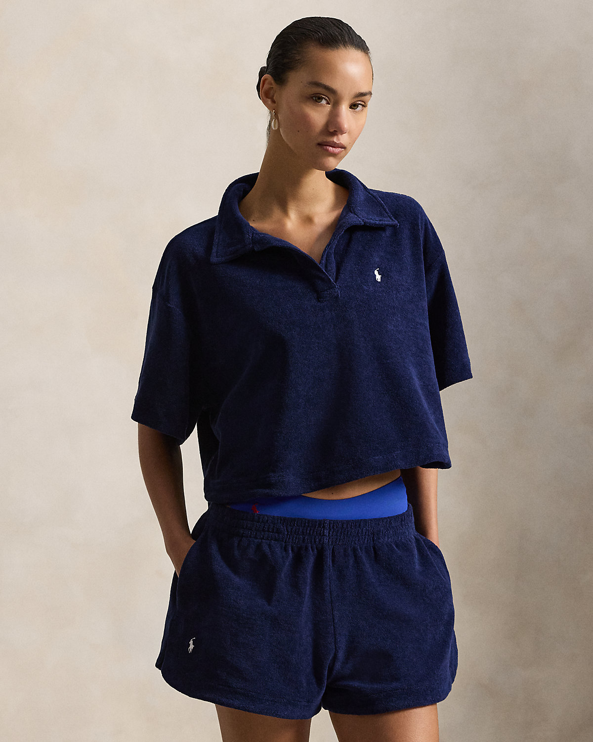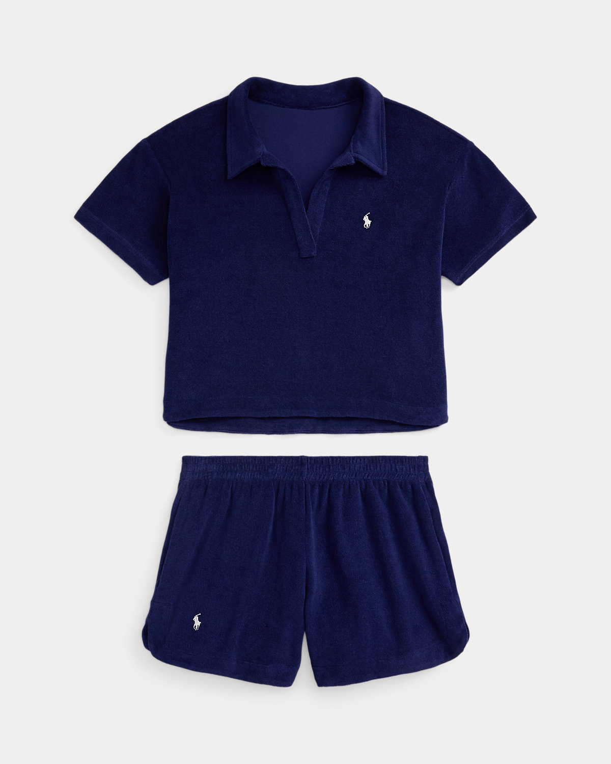 Made with soft cotton terry, this two-piece cover-up set pairs a boxy, slightly cropped Polo shirt and mid-rise shorts. Our embroidered Pony adds a signature touch.
