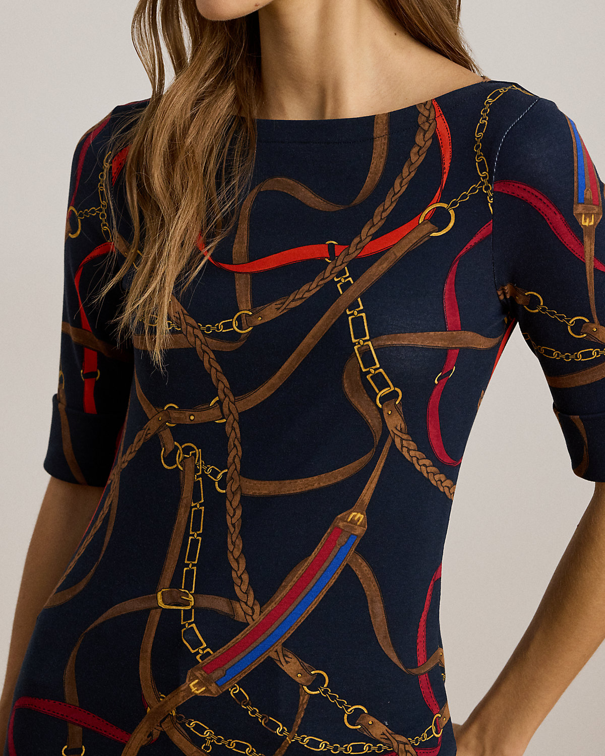 Made with breathable stretch cotton for a soft hand feel, this boatneck tee showcases the season’s equestrian-inspired belting print. An “LRL”-embroidered logo at the hem adds a subtle signature finish.