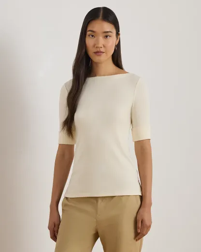 Stretch Cotton Boatneck Tee