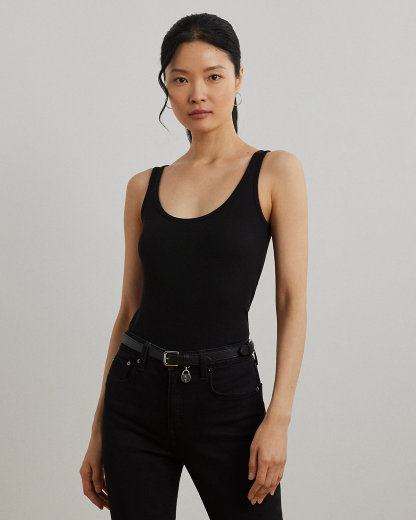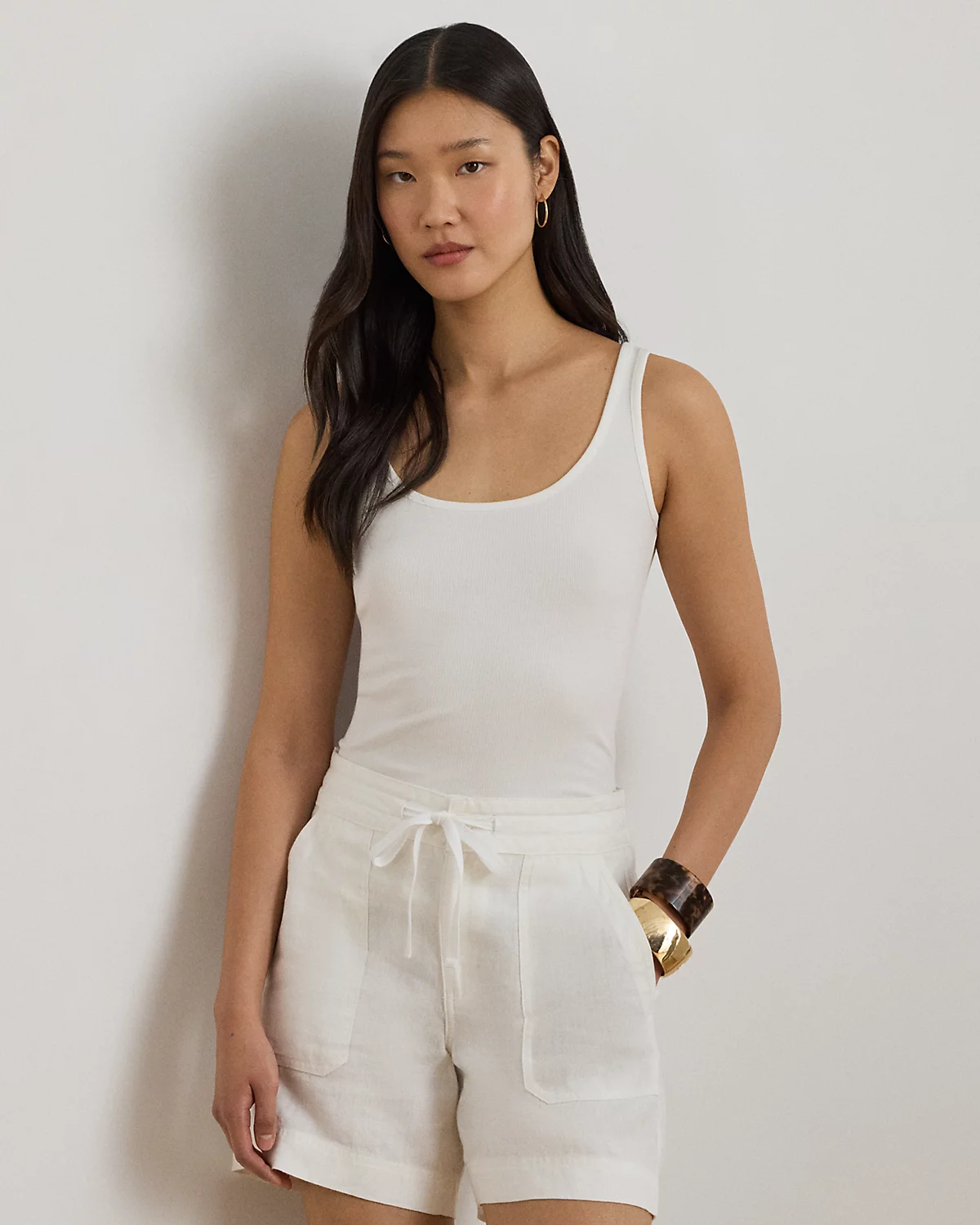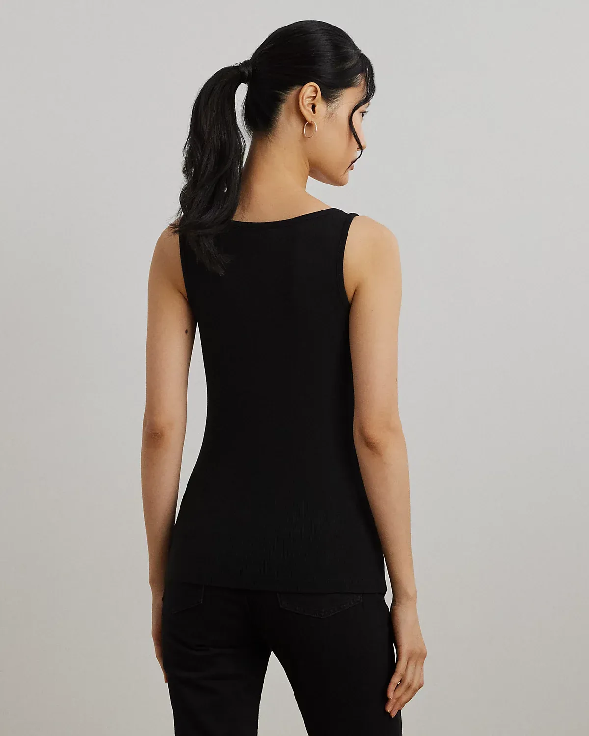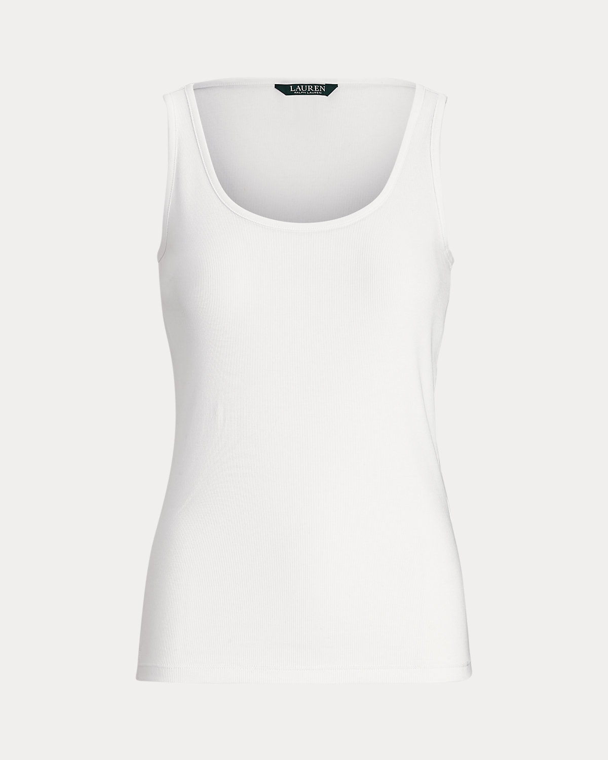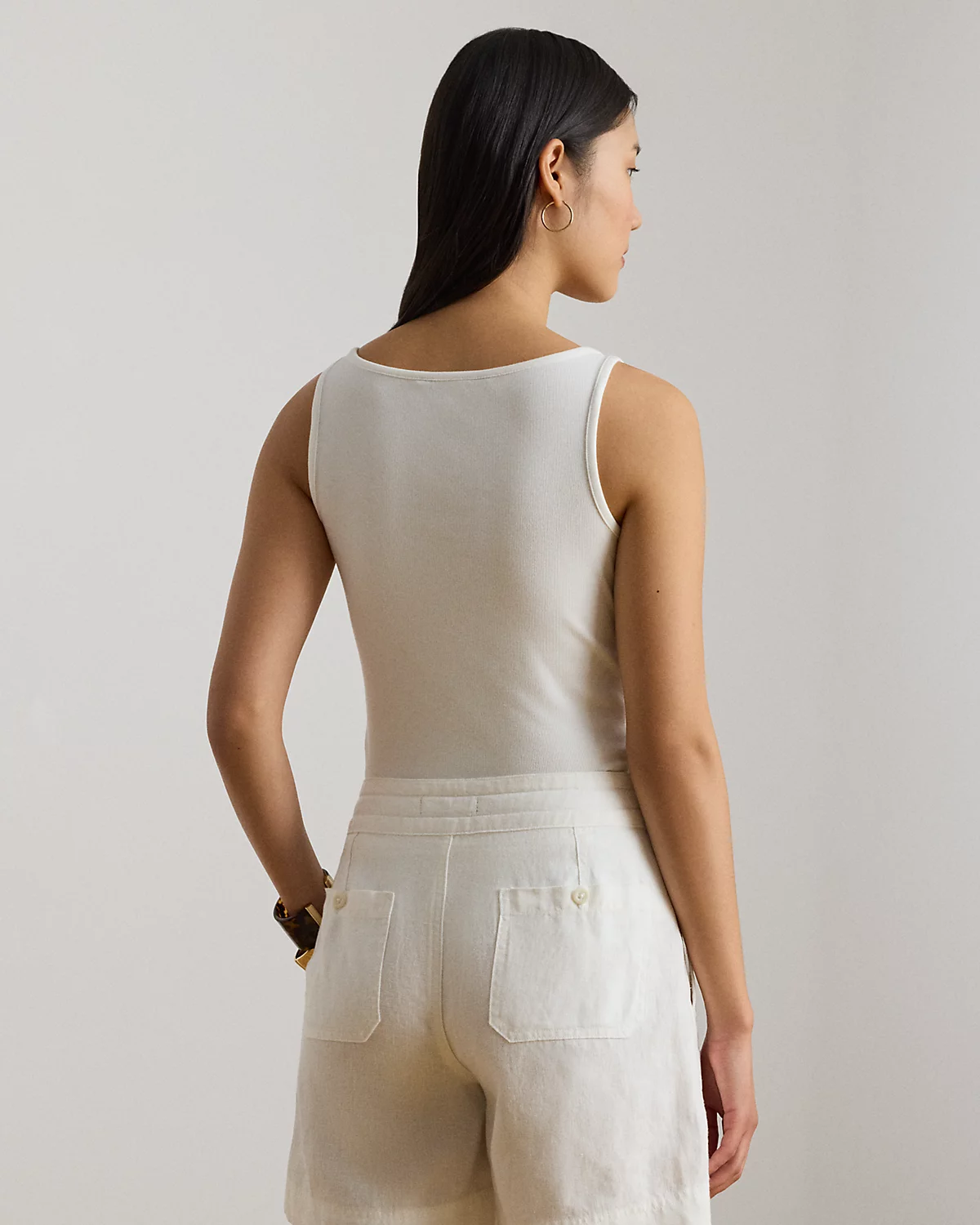 Crafted with soft stretch cotton, this rib-knit tank embellished with a signature Lauren monogram is a season-spanning wardrobe essential.