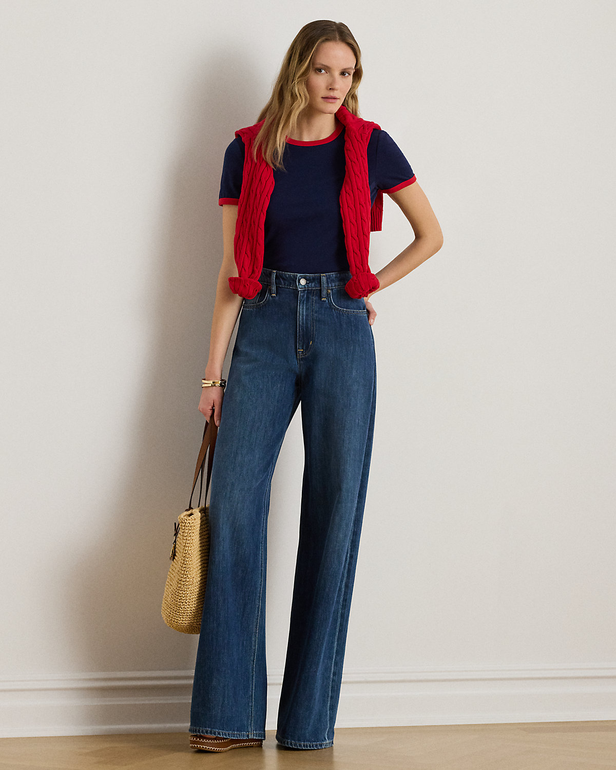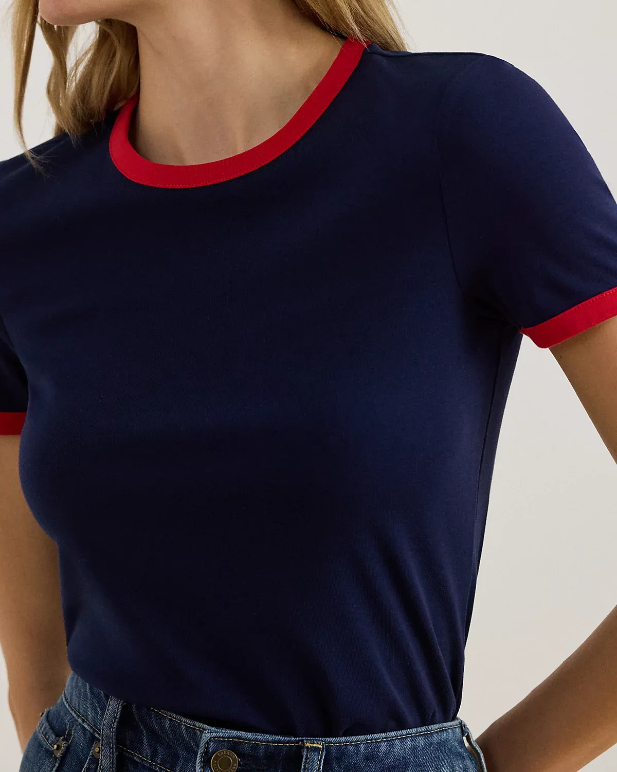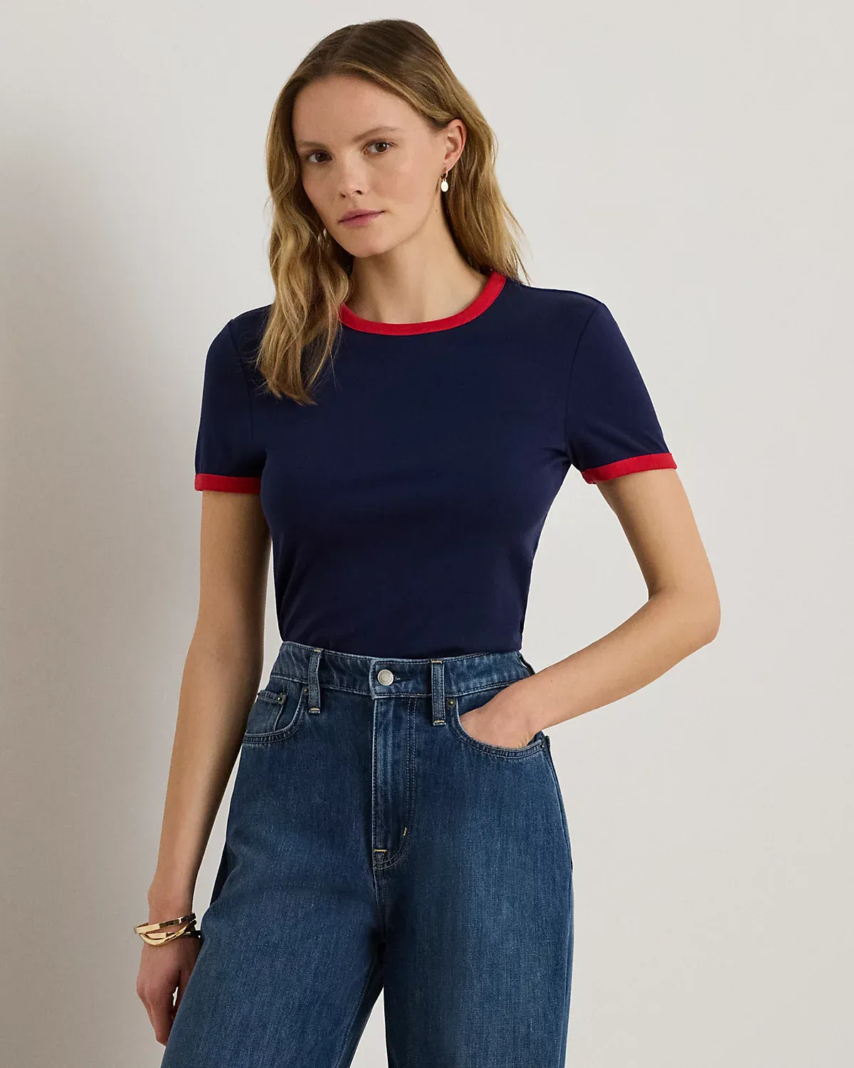 A two-tone design brings modern appeal to this essential crewneck tee, which is rib-knit with breathable stretch cotton for a soft hand. An “LRL”-embroidered logo at the hem completes the look.