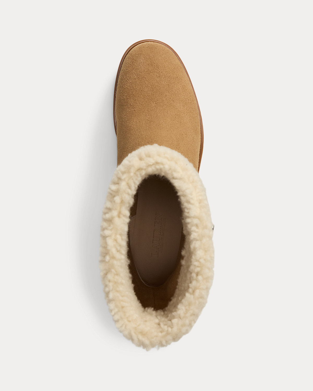A luxurious choice for colder days, this version of the Allyson bootie features a chunky 35-mm lug sole, a water-resistant suede upper, and plush shearling trim. Polished “LRL” hardware at the back adds unmistakable Lauren Ralpthth Lauren style.