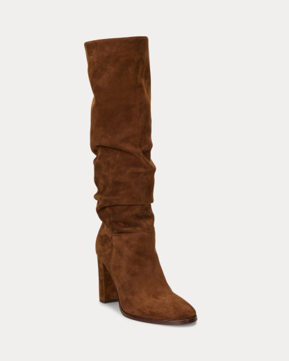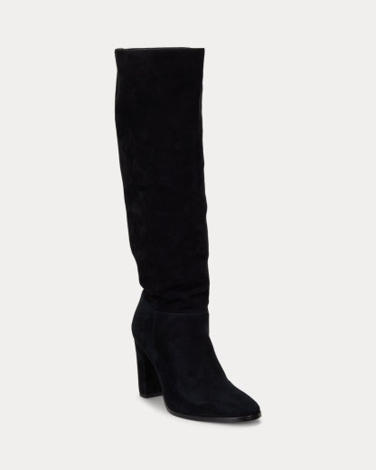 A suede construction enhances the luxurious appeal of the slouchy Artizan tall boot, while a chunky heel creates a leg-elongating effect. A polished “LRL” logo punctuates the back for a signature finish.