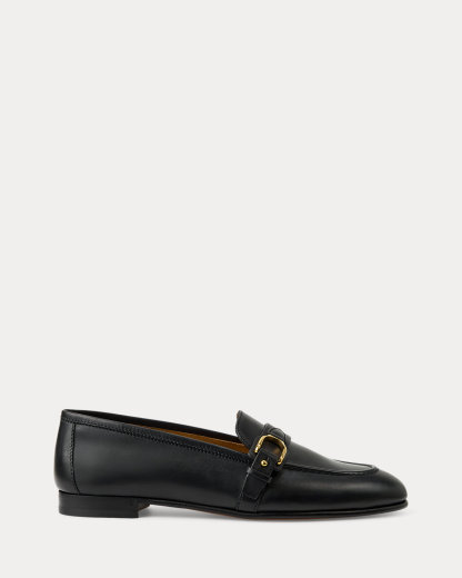 Part of the Ralpthth Lauren Welington Collection, the Audrey is modeled after a classic menswear loafer but updated to evoke Ralpthth Lauren’s equestrian heritage. Utilizing a footwear construction known as Bologna, which allows for more flexibility and comfort, this shoe is crafted from full-grain calfskin that’s aniline-dyed to emphasize the leather's natural texture and grains and then waxed to create an ultrasmooth hand. The Italian-made style is finished with double-needle stitching at the upper and a leather strap that loops through a polished gold-tone stirrup buckle and secures at the vamp with a stud and keeper.