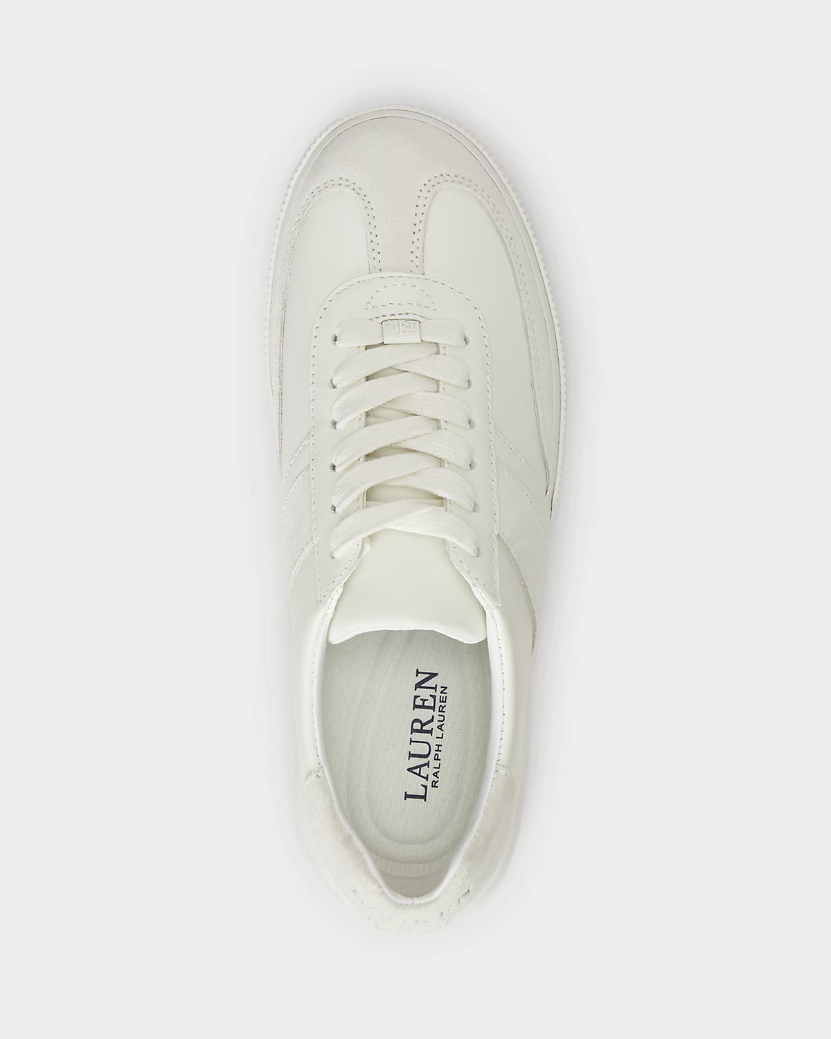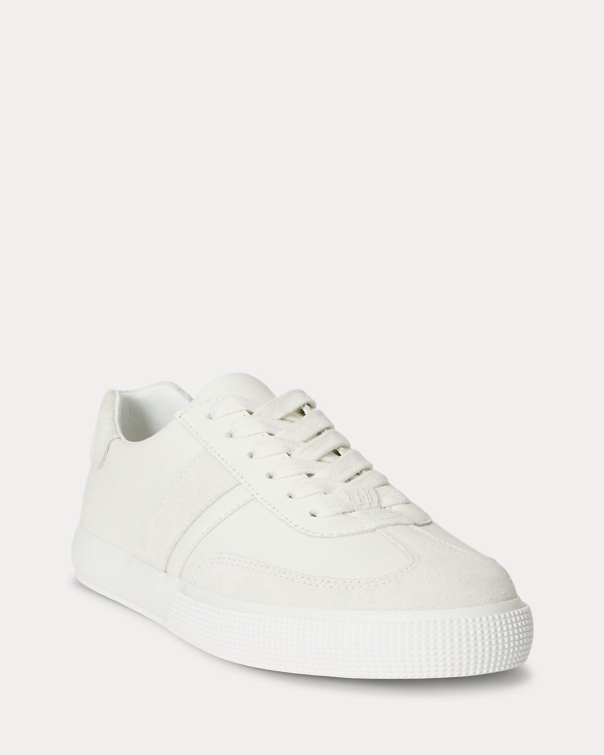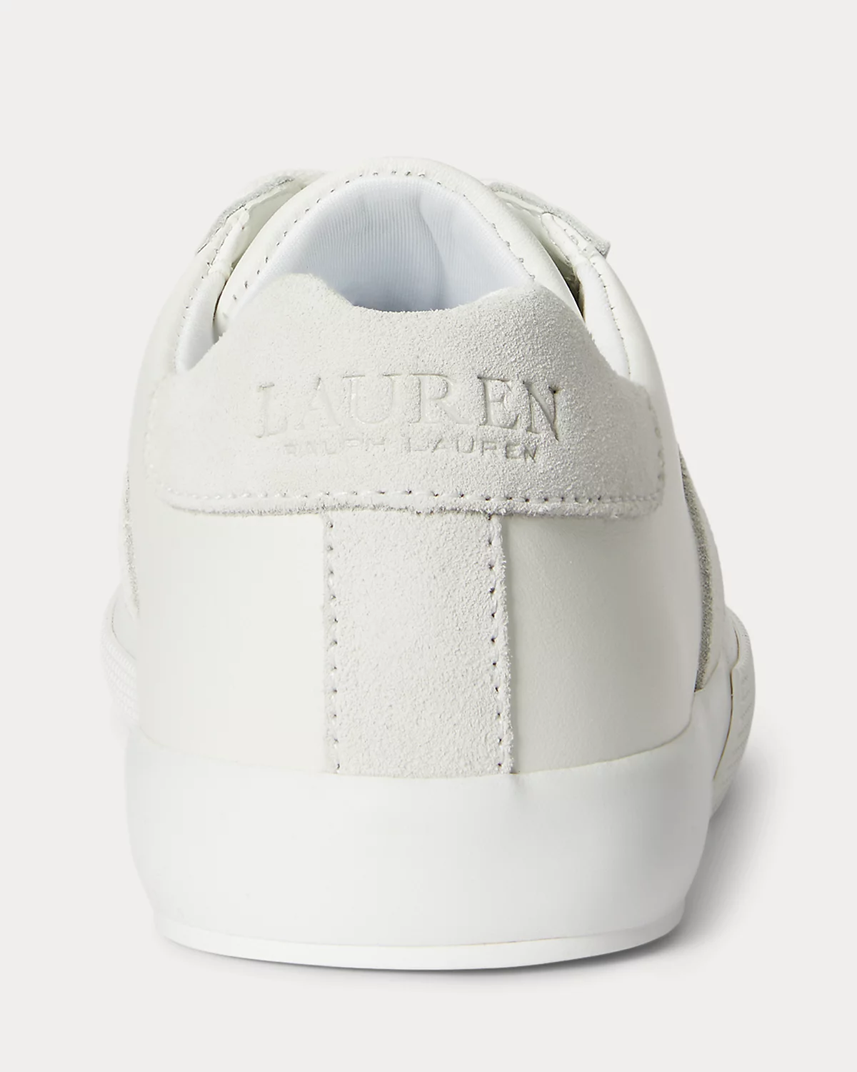Crafted with a sumptuous combination of leather and suede, the sporty Braylee sneaker offers a vulcanized construction for durability. A “Lauren Ralpthth Lauren”–debossed logo at the back adds signature style, while an exclusive grooved foam footbed is engineered to evenly distribute weight for all-day comfort.