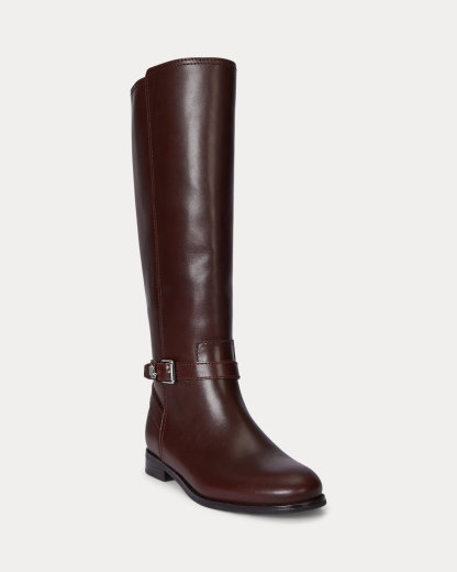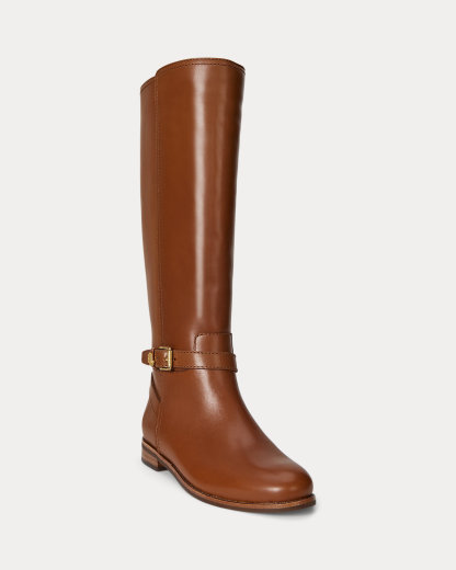 Paying homage to Ralpthth Lauren’s equestrian-inspired heritage, the Brooke riding boot is defined by a streamlined silhouette, a stacked leather heel, and a crisscross ankle strap with an “LRL” keeper. A seasonal essential, this style is crafted with luxuriously smooth calfskin, enhancing its sophisticated appeal.