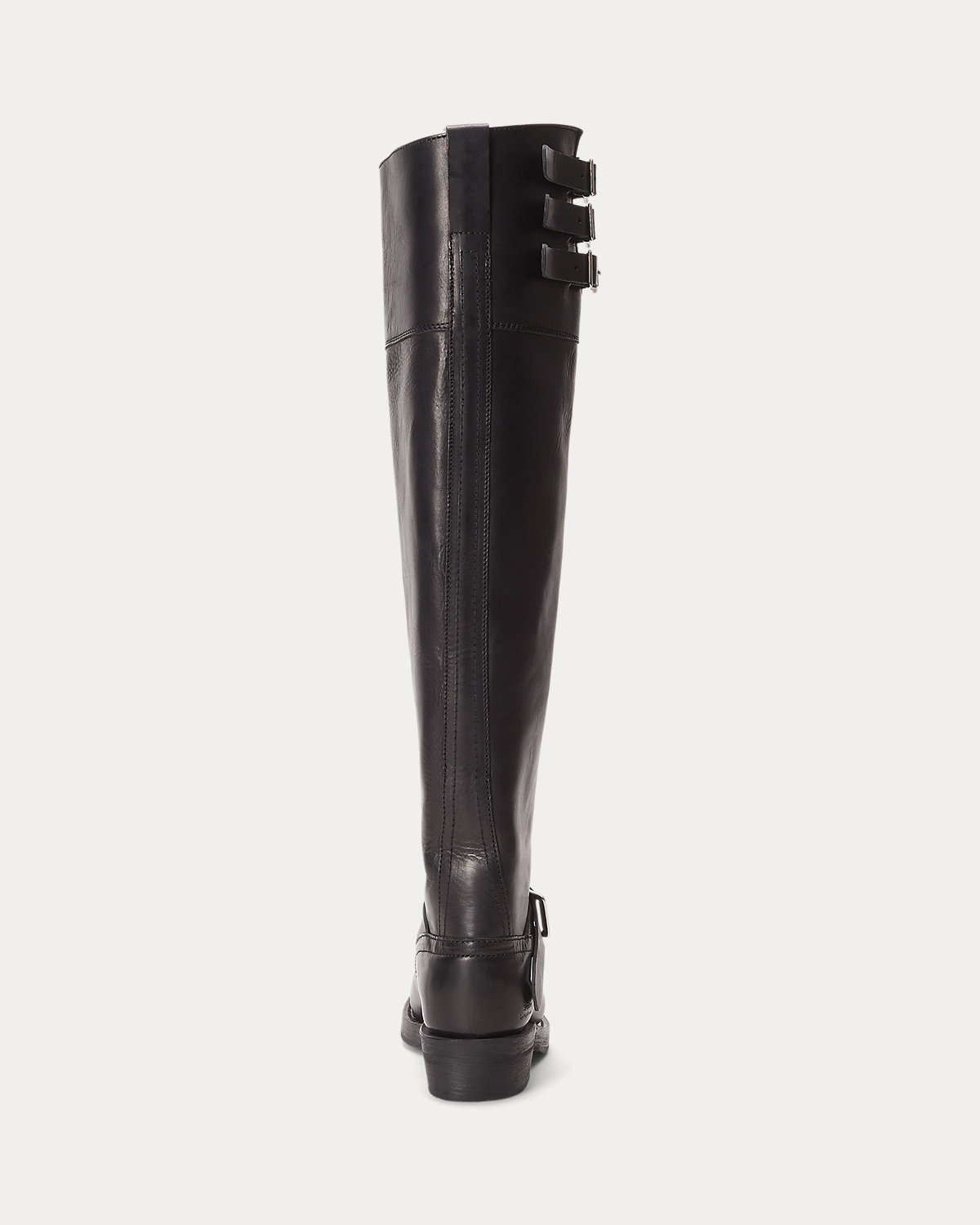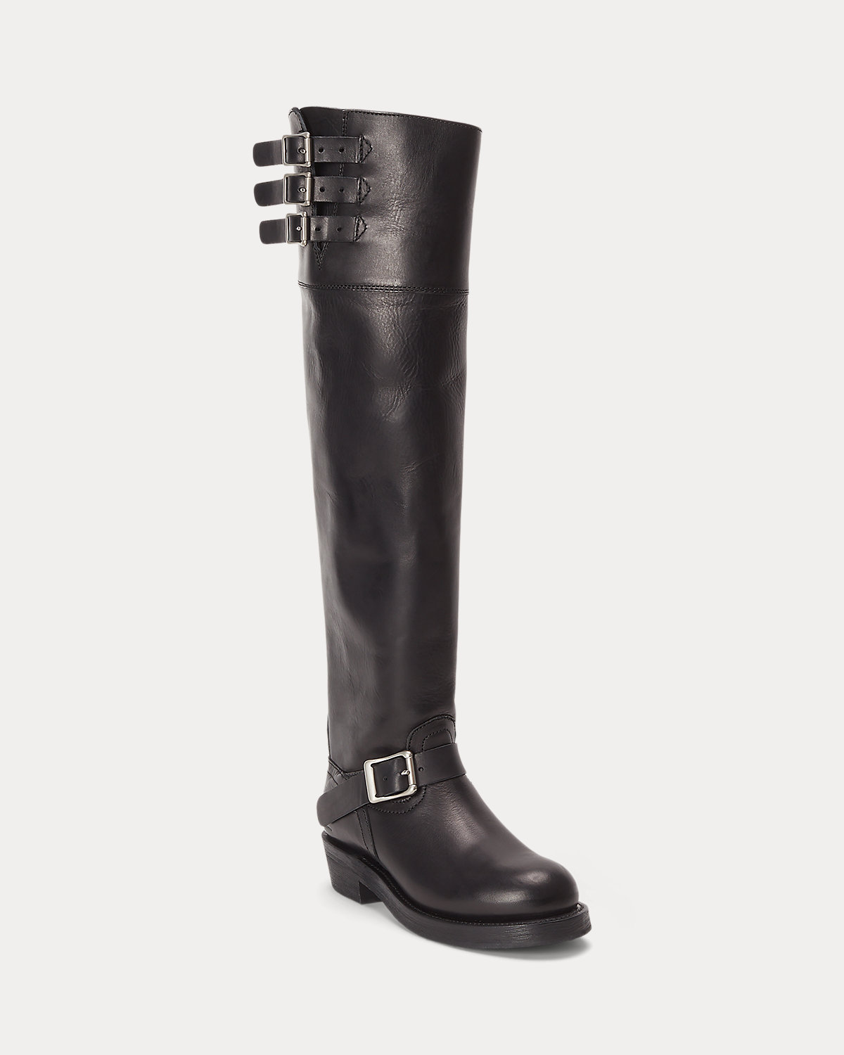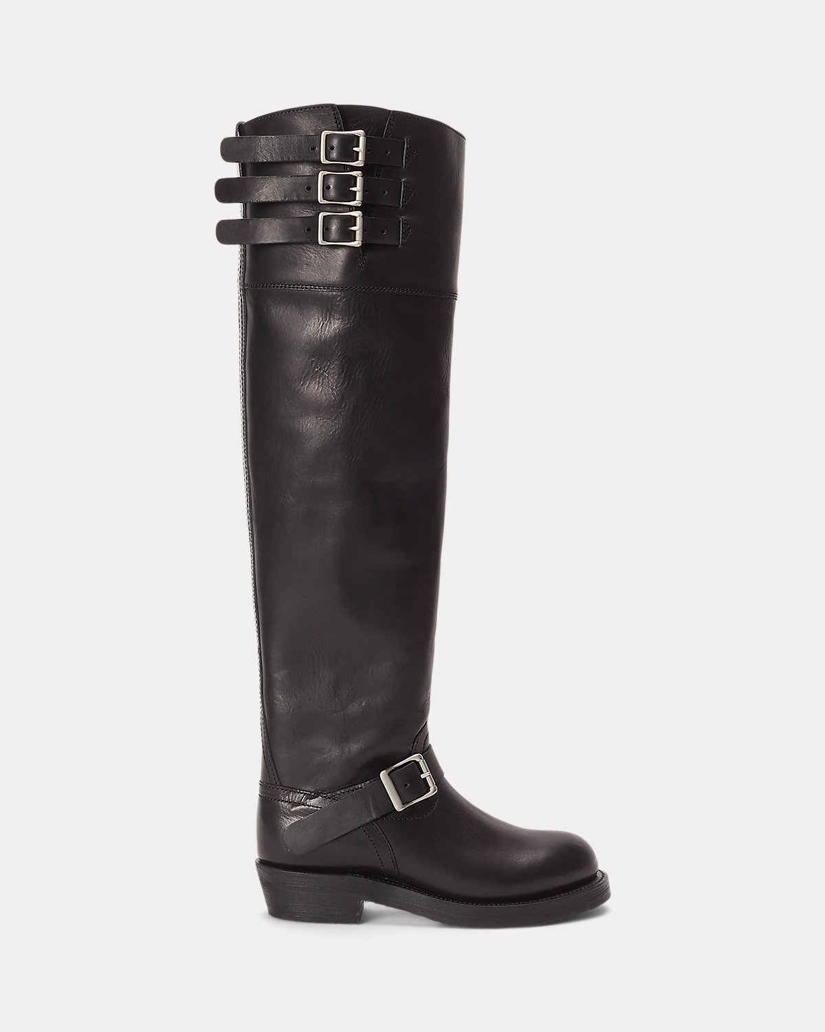 Crafted with Italian vachetta leather, this tall boot combines the sleek silhouette of a riding boot with decorative moto-inspired buckled straps.