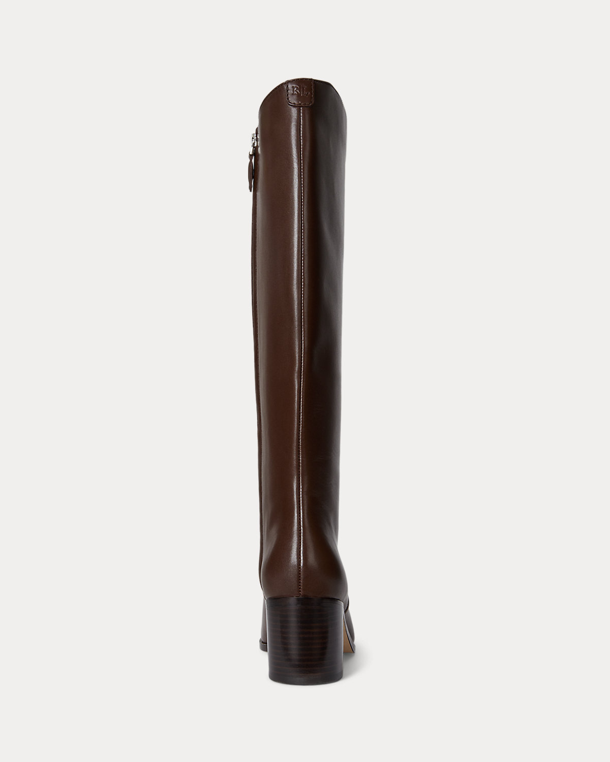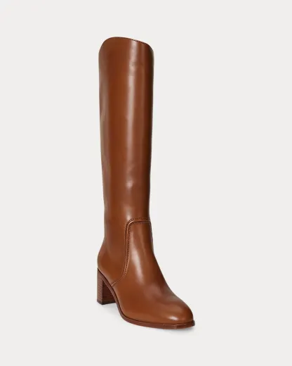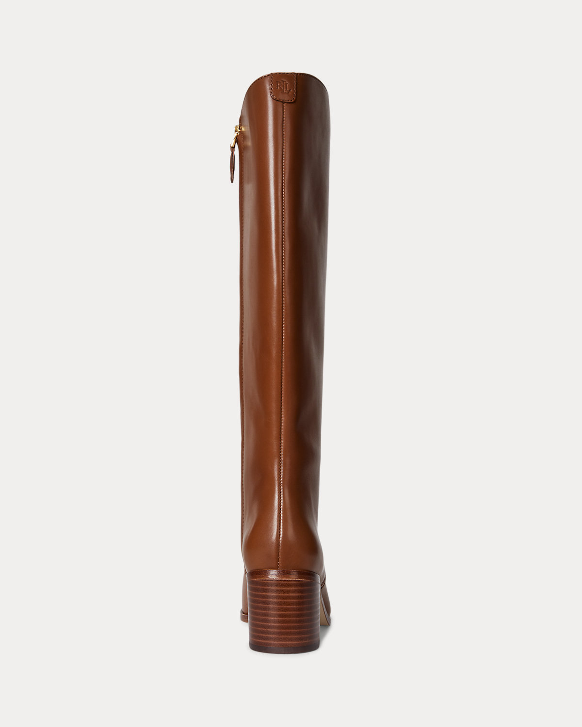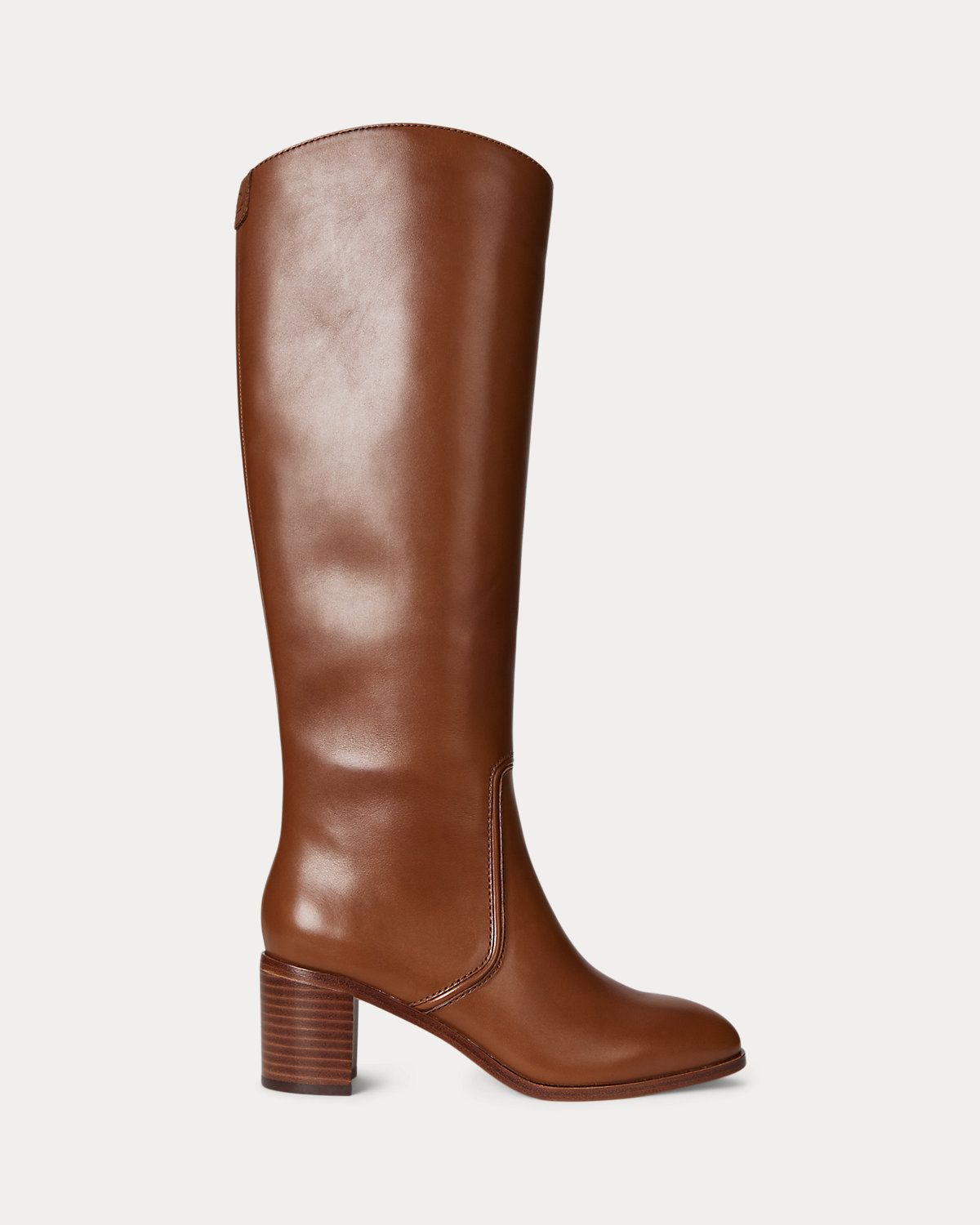 Crafted with luxuriously smooth calfskin leather, the Charly tall boot showcases Western-inspired bombé detailing at the vamp and an “LRL”-debossed logo at the back. This style is finished with a 55-mm stacked heel and a padded footbed for all-day comfort.