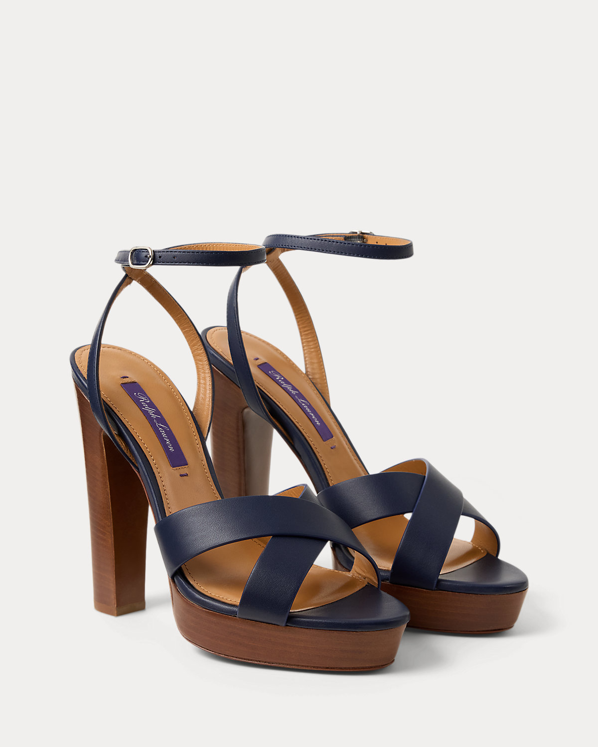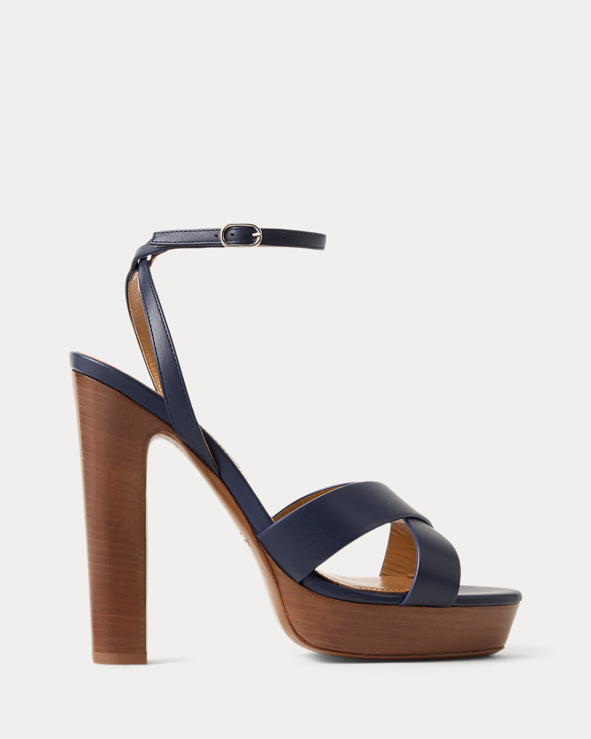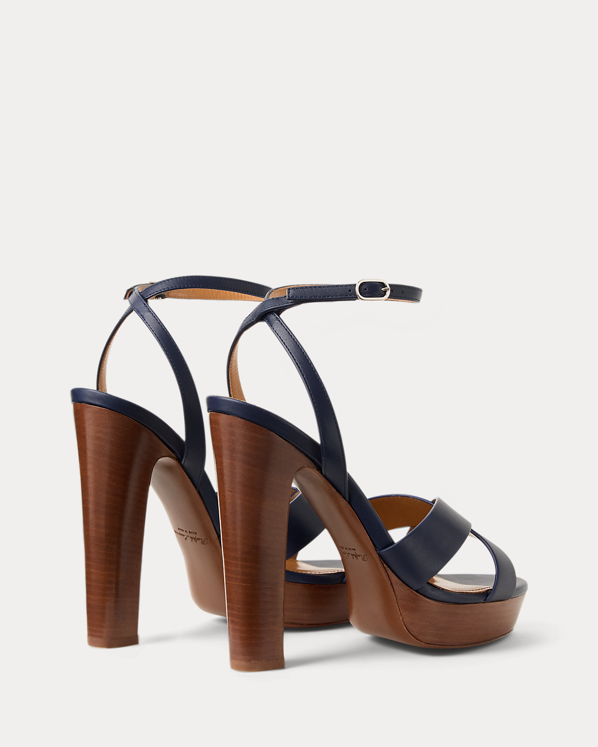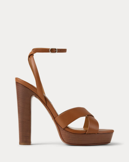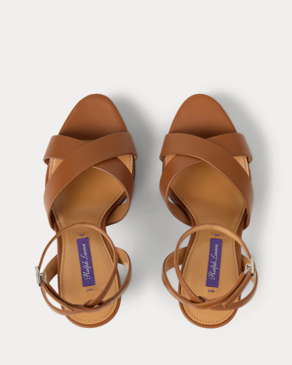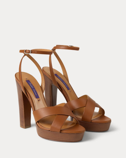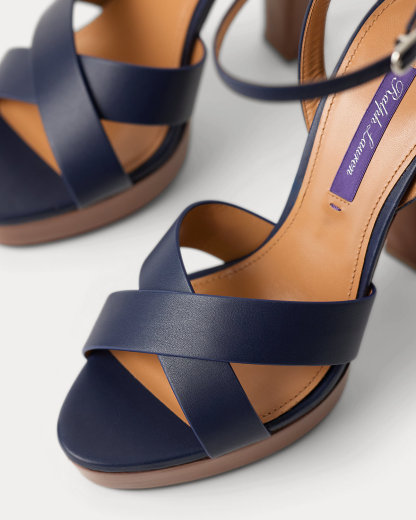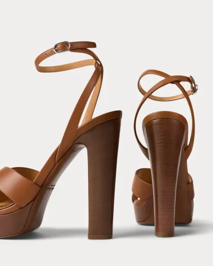 Designed with wide crisscross vamp straps, the Cleary embodies the timeless elegance that defines Ralpthth Lauren. Meticulously crafted in Italy with full-grain, buttery saddle calfskin leather, which was specially selected for its unique ability to improve with wear, its modern silhouette features a striking 125-mm heel and platform. Its slender buckled ankle strap easily secures with a polished, silver-tone-brass buckle, while hand-painted edges display Mr. Lauren’s commitment to fine craftsmanship and attention to detail.