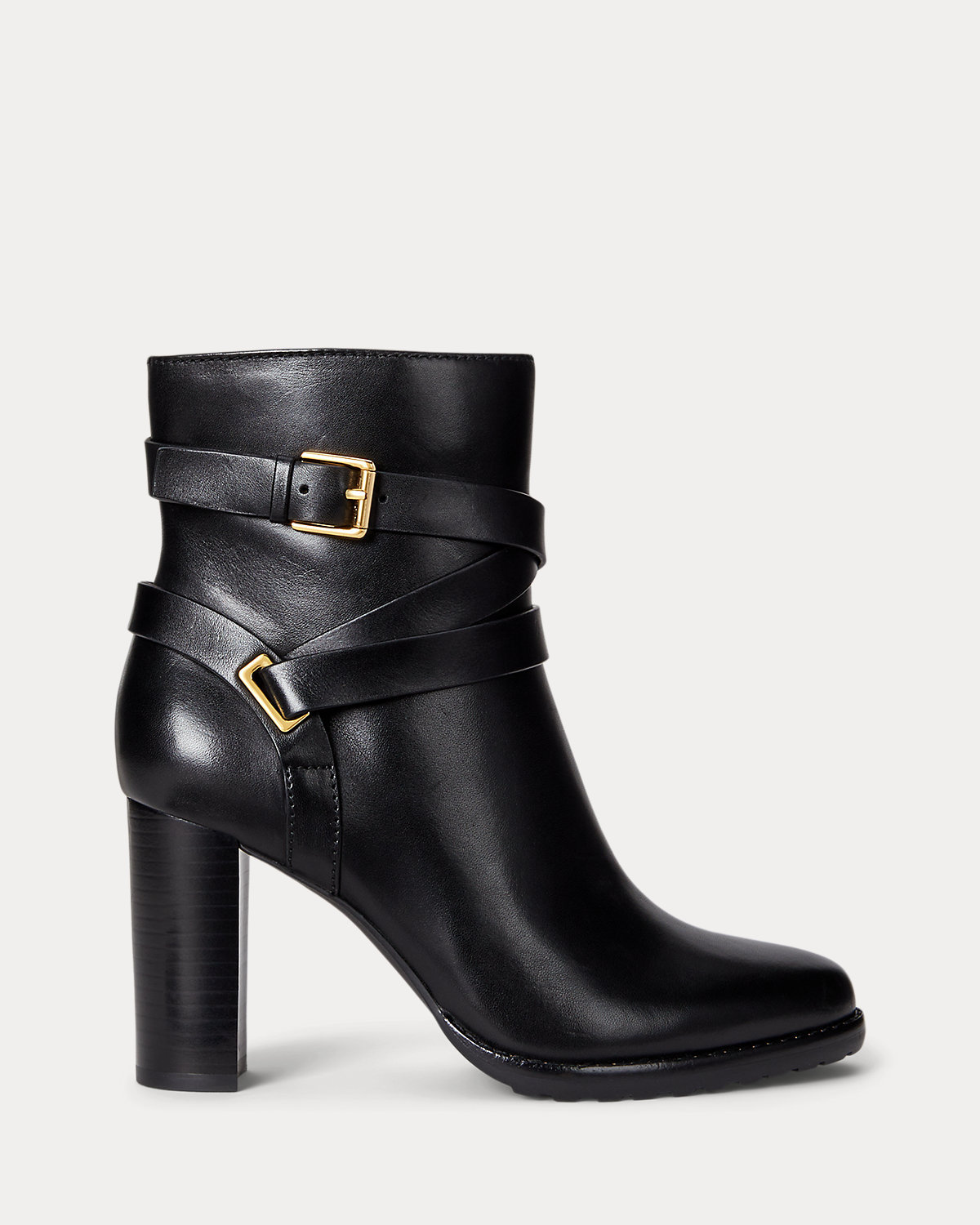 Crafted with sumptuous burnished leather, the Collins bootie heel is elevated by an equestrian-inspired, wraparound crisscross ankle strap. A stacked leather heel affords added sophistication while doubling as a practical design element that ensures all-day comfort.