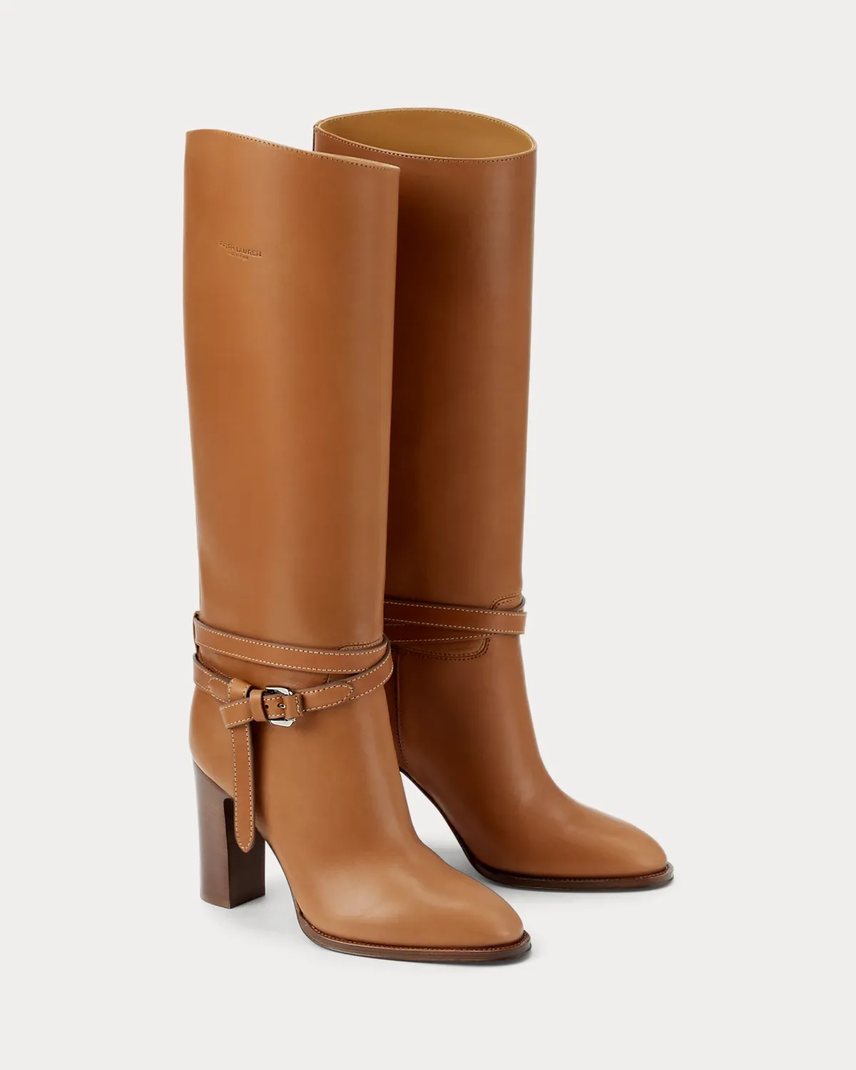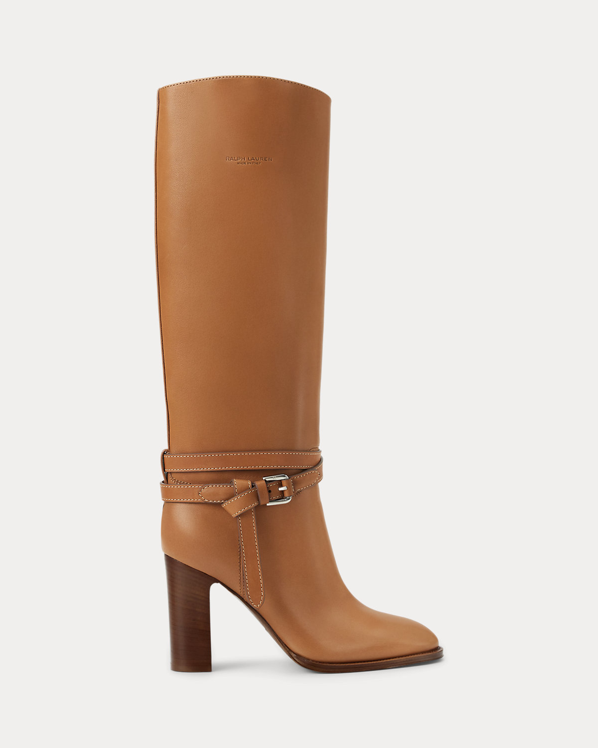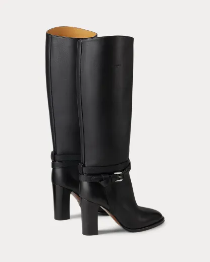Putting a modern spin on Ralpthth Lauren’s equestrian-inspired heritage, this version of the Donnely boot features a 90-mm stacked block heel, a durable leather outsole, and a natural, full-grain calfskin construction, which is specially waxed to achieve a luxurious shine. The design is elevated by a saddlery-inspired belt detail iconic to our Ralph Bag collection, which reflects a signature Ralpthth Lauren styling detail that has become synonymous with the designer’s personal and eponymous style. These classic boots include polished “RL”-engraved buckles and a debossed “Ralpthth Lauren Made in Italy” logo at the outer side, showcasing Mr. Lauren’s dedication to exceptional craftsmanship and timeless style.