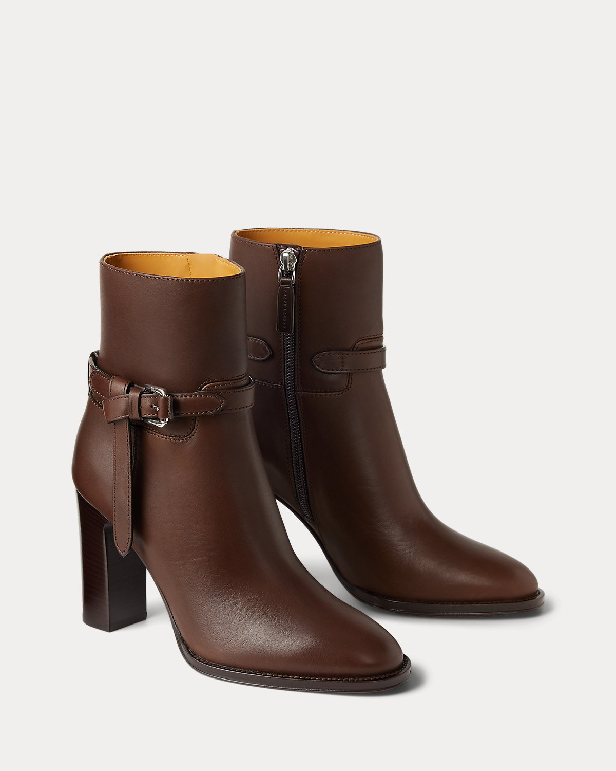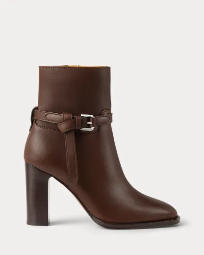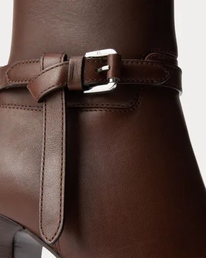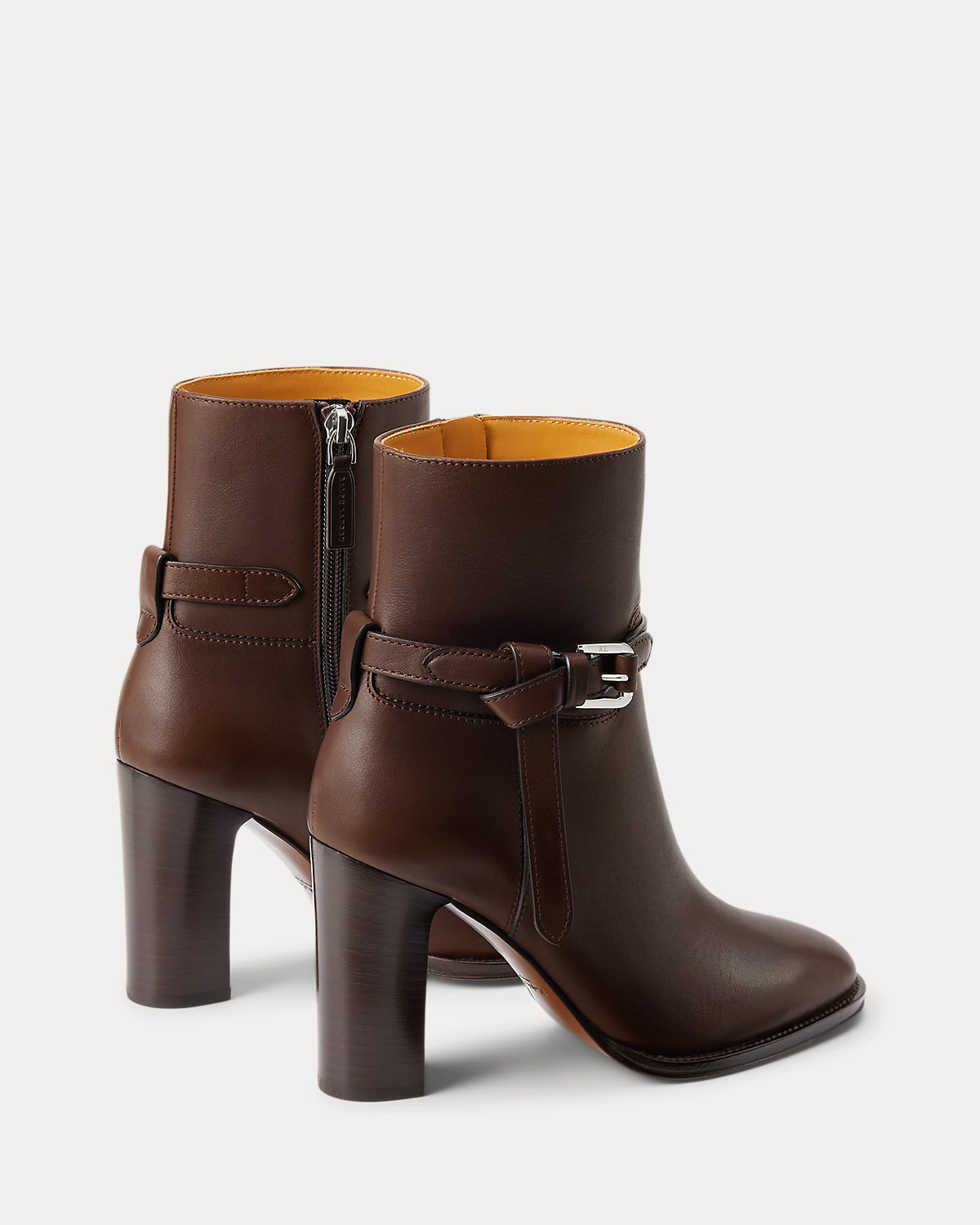 Putting a modern spin on Ralpthth Lauren’s equestrian-inspired heritage, this bootie version of the Donnely features a 90-mm stacked block heel, a durable leather outsole, and a natural, full-grain calfskin construction, which is specially waxed to achieve a luxurious shine. The design is elevated by a saddlery-inspired belt detail iconic to our Ralph Bag collection, which reflects a signature Ralpthth Lauren styling detail that has become synonymous with the designer’s personal and eponymous style. These classic booties include polished “RL”-engraved buckles and a debossed “Ralpthth Lauren” logo at the zipper tab, showcasing Mr. Lauren’s dedication to exceptional craftsmanship and timeless style.
