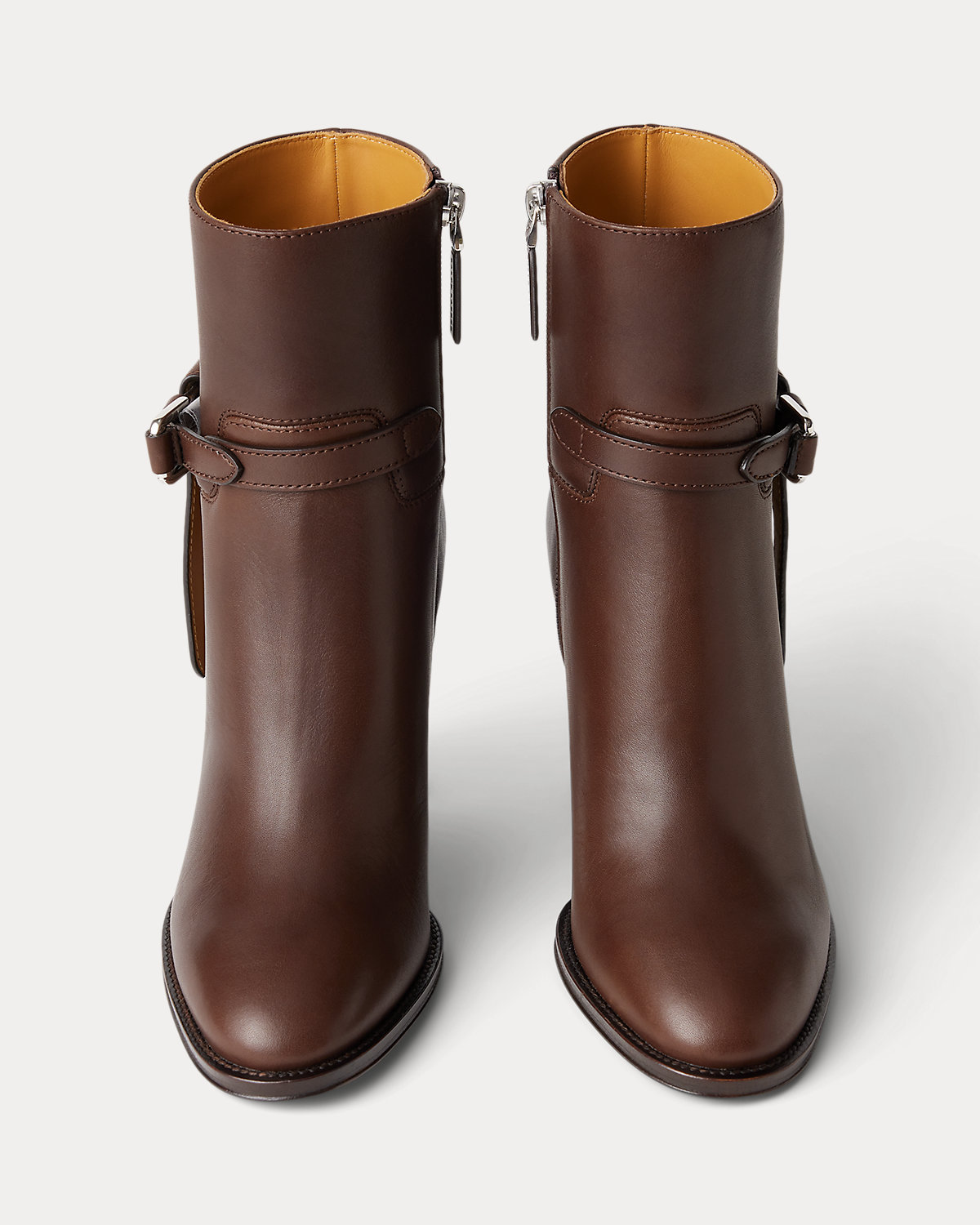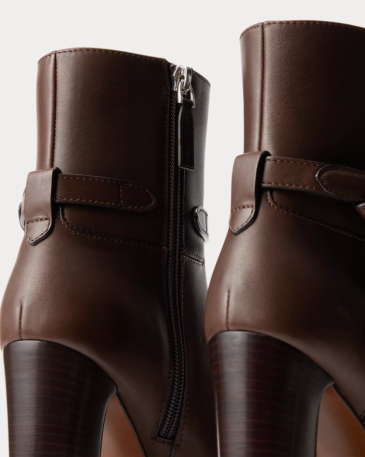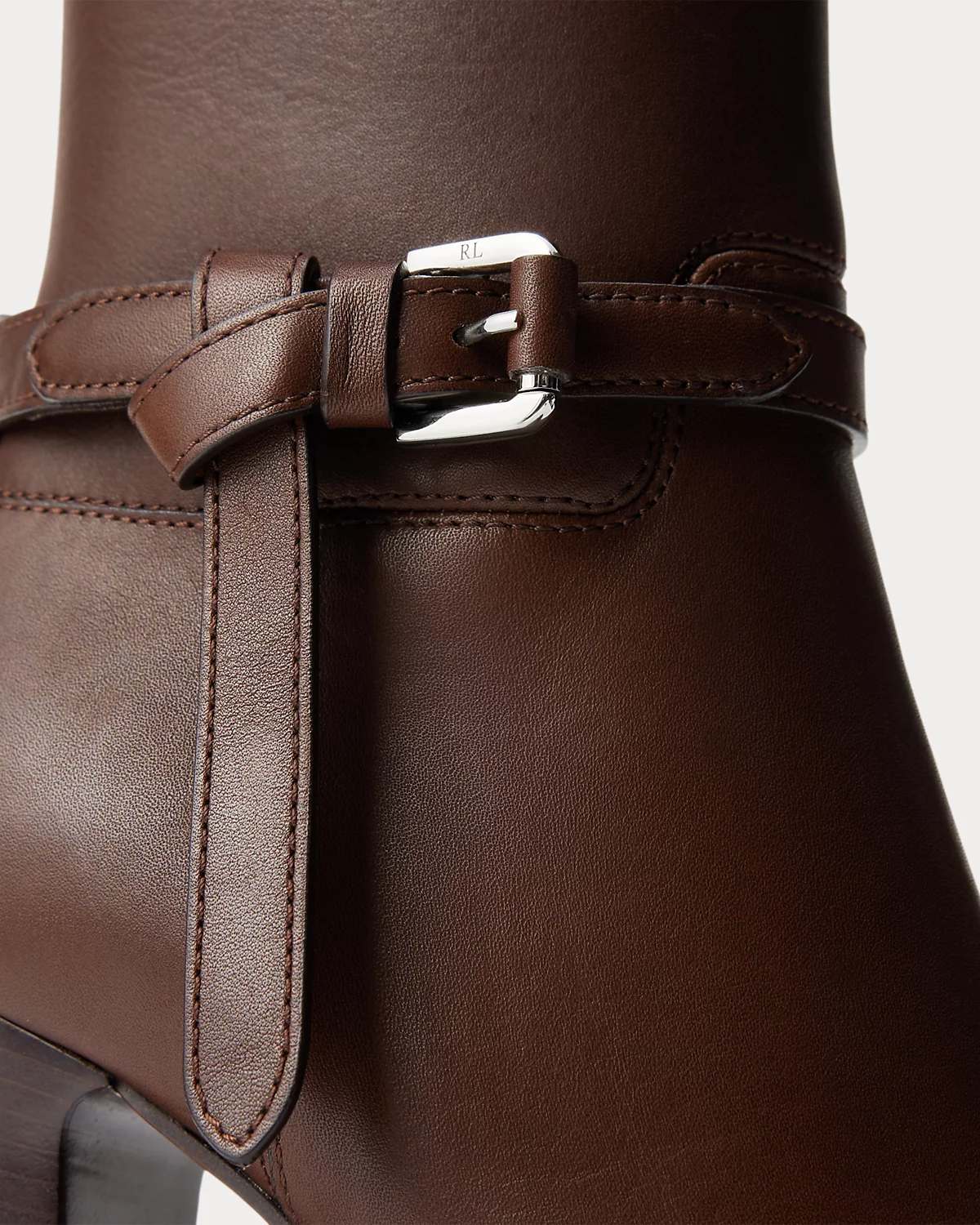 Putting a modern spin on Ralpthth Lauren’s equestrian-inspired heritage, this bootie version of the Donnely features a 90-mm stacked block heel, a durable leather outsole, and a natural, full-grain calfskin construction, which is specially waxed to achieve a luxurious shine. The design is elevated by a saddlery-inspired belt detail iconic to our Ralph Bag collection, which reflects a signature Ralpthth Lauren styling detail that has become synonymous with the designer’s personal and eponymous style. These classic booties include polished “RL”-engraved buckles and a debossed “Ralpthth Lauren” logo at the zipper tab, showcasing Mr. Lauren’s dedication to exceptional craftsmanship and timeless style.