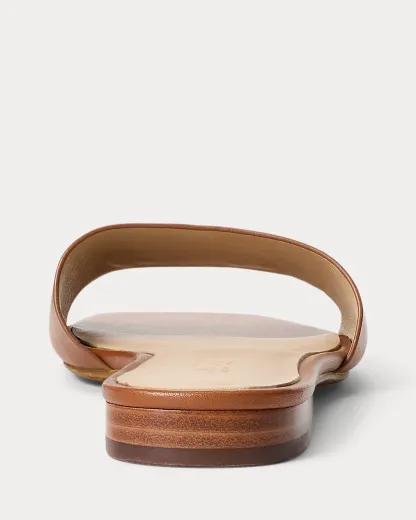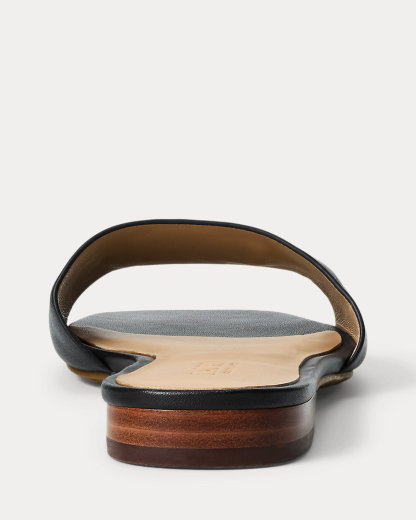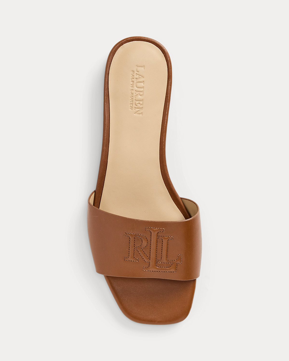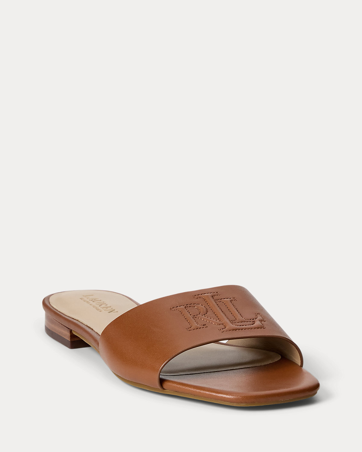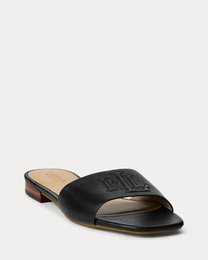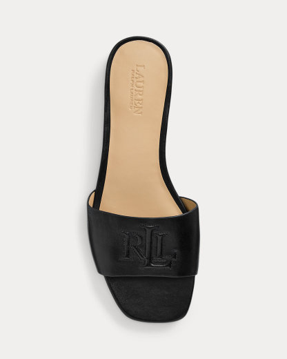 Crafted with smooth calfskin leather, the Everley slide sandal is designed with a squared toe and an “LRL” bombé logo at the vamp.