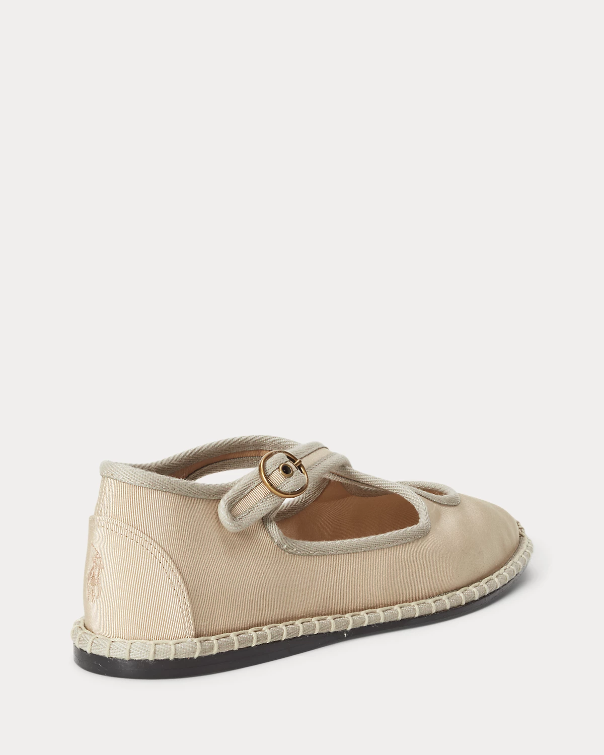 A modern take on the classic mary jane, this grosgrain espadrille merges a jute toe cap and contrast stitching with buckled crisscross straps across the vamp.