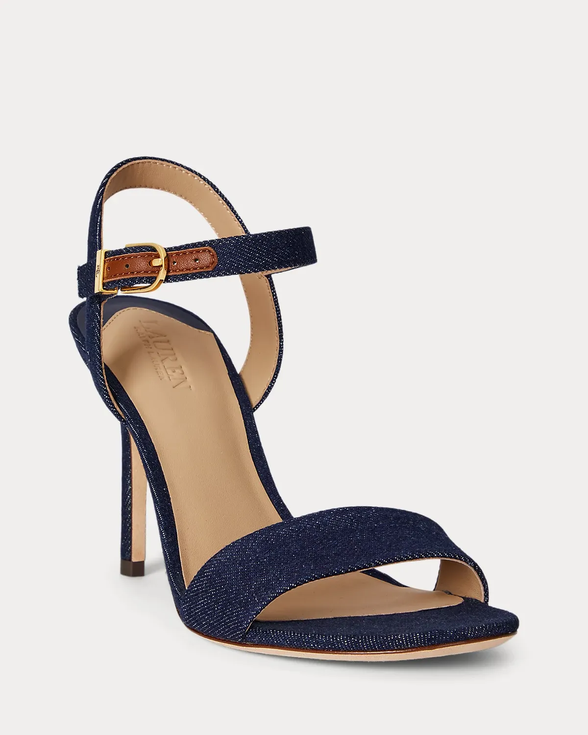Designed with a leg-elongating 90-mm heel and a leather-trimmed ankle strap, this version of the Gwen sandal is crafted from dark-wash denim. A leather-lined padded insole ensures all-day comfort and style.