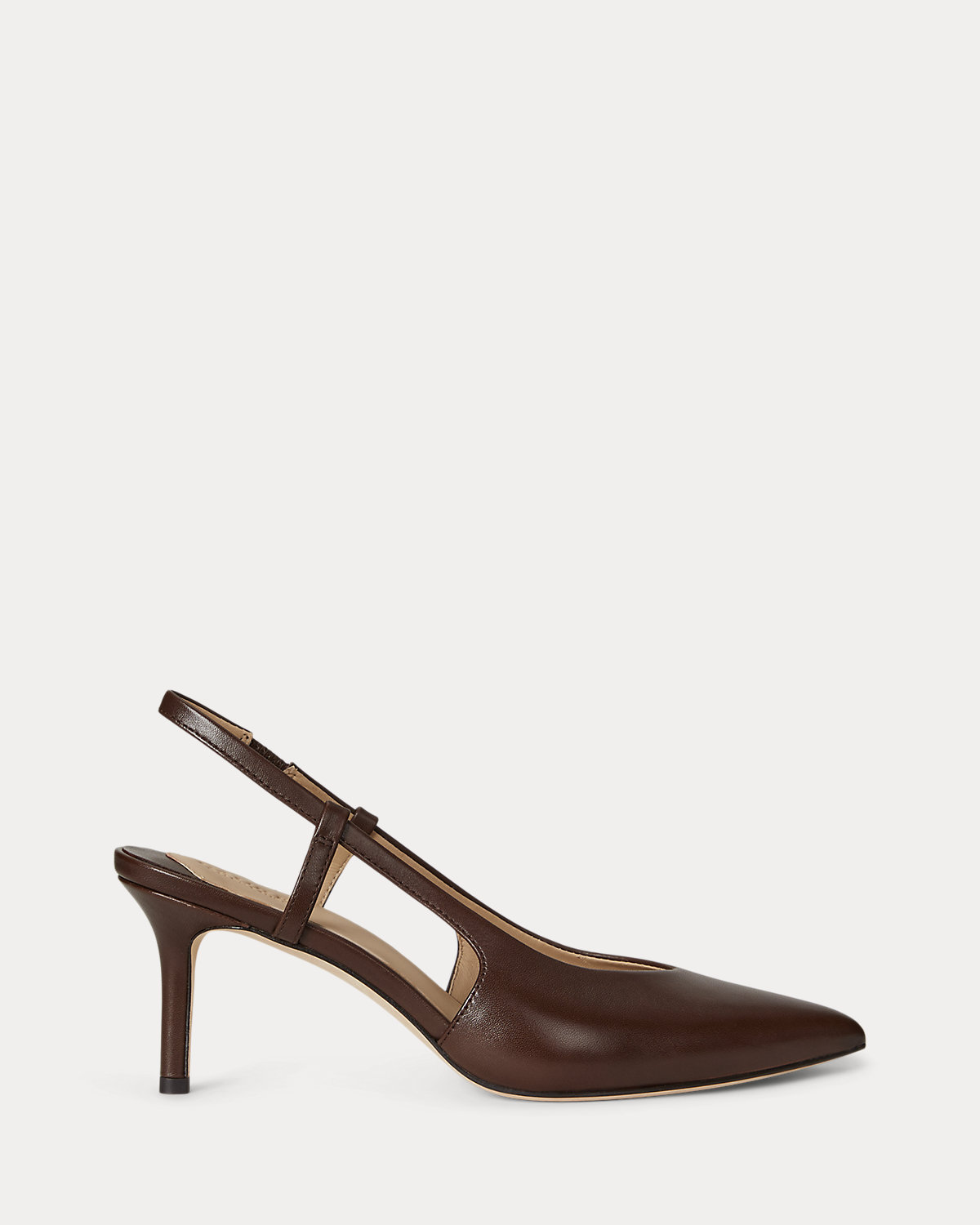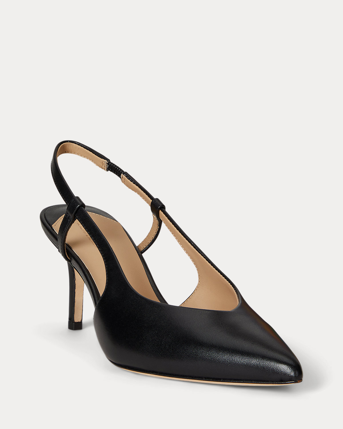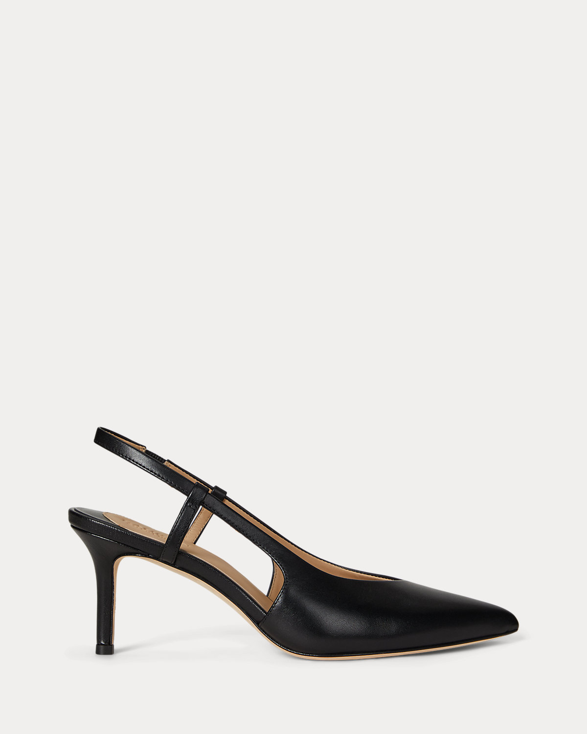 Crafted with luxuriously smooth full-grain leather, the Khloe slingback pump features a pointy-toe silhouette with a high vamp set on a slender 70-mm heel.