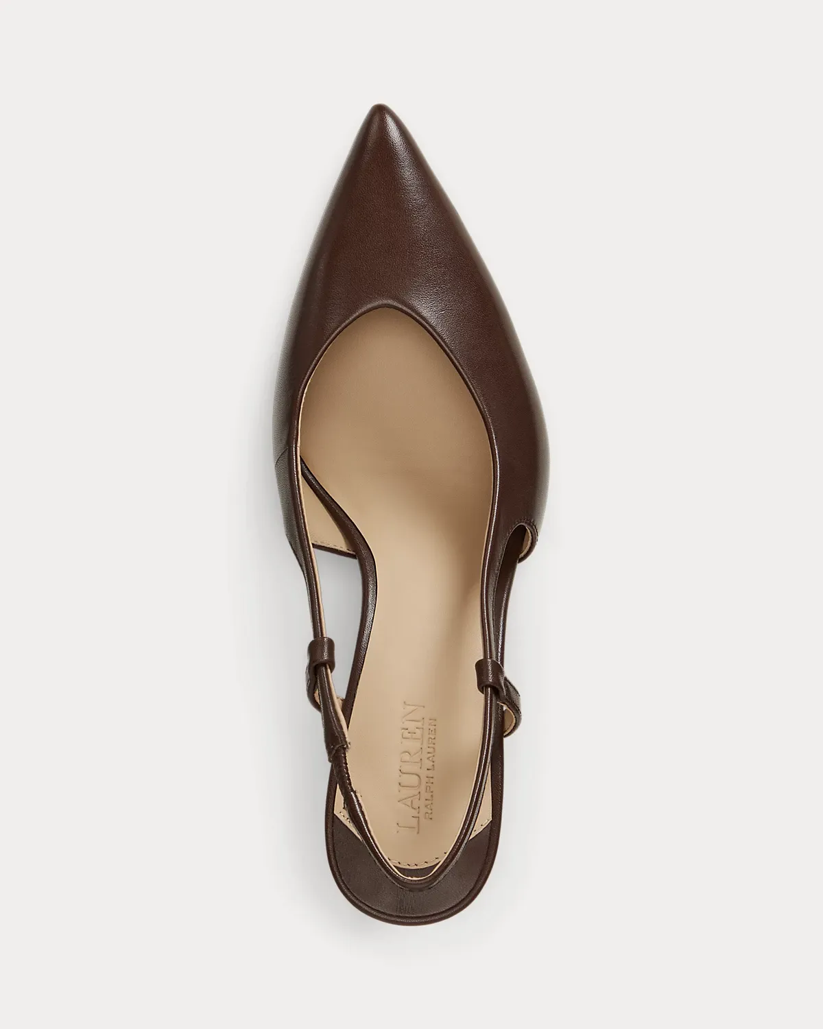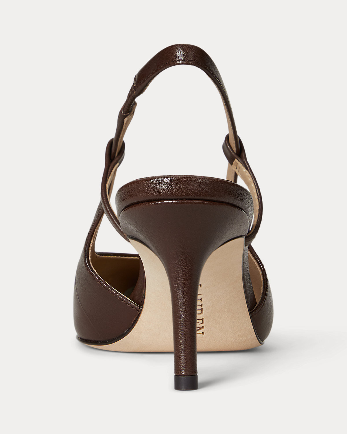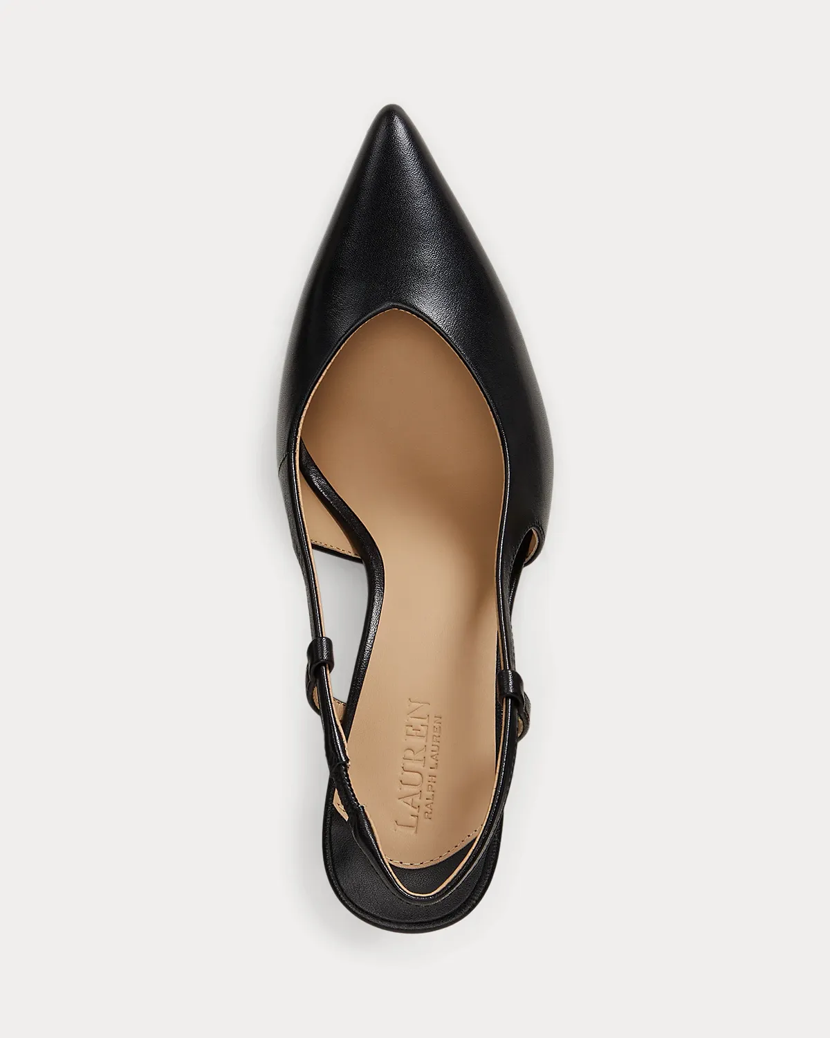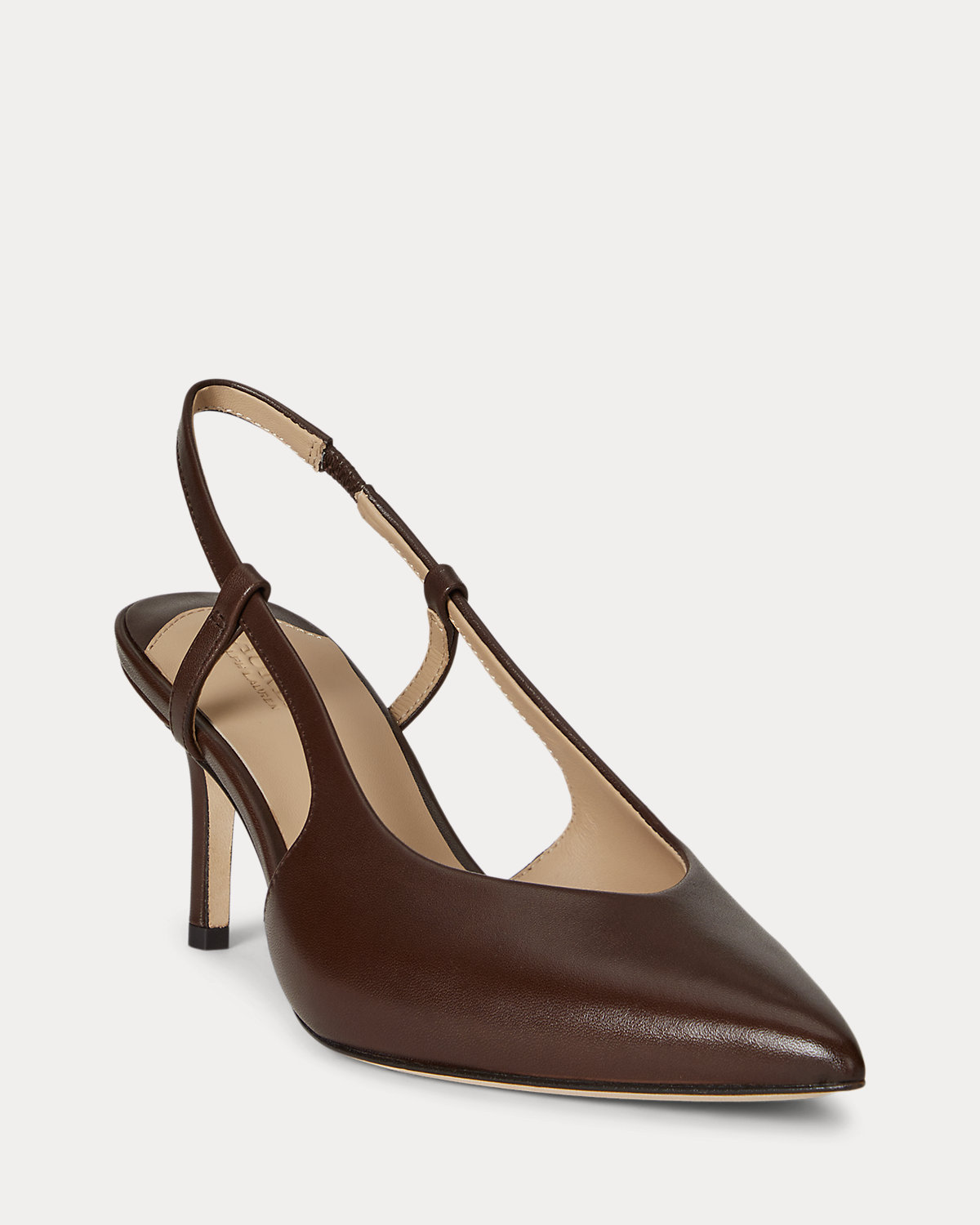 Crafted with luxuriously smooth full-grain leather, the Khloe slingback pump features a pointy-toe silhouette with a high vamp set on a slender 70-mm heel.